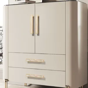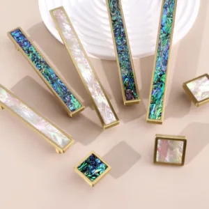 ไฮไลต์สำคัญของซีรีส์นี้คือวัสดุ เปลือกหอยธรรมชาติ ที่ให้ประกายมุกและมิติของสีแบบ “เปลี่ยนเฉดตามแสง” ทำให้เฟอร์นิเจอร์ดูมีชีวิตและดูแพงขึ้นทันที โดยเฉพาะเมื่อจับคู่กับกรอบ ทองเหลือง ที่ช่วยเพิ่มความหรูหราและความคมชัดของเส้นงาน ฮาร์ดแวร์ชุดนี้เหมาะมากกับหน้าบานสีอ่อน (ครีม/ขาว/เทา) หรือไม้โทนอุ่น รวมถึงงาน Modern Contemporary ที่ต้องการดีเทลเด่นแบบไม่เยอะเกิน