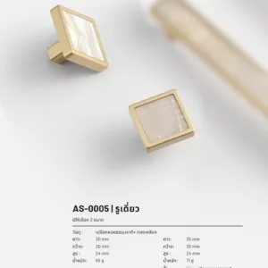 ชุดมือจับ และ ปุ่มจับเฟอร์นิเจอร์เปลือกหอย AS-0003–AS-0006 คือชุดฮาร์ดแวร์เฟอร์นิเจอร์ระดับพรีเมียมที่รวมทั้ง ปุ่มจับเฟอร์นิเจอร์ และ มือจับเฟอร์นิเจอร์ ไว้ในหน้าเดียว เพื่อให้การเลือกใช้งานง่ายขึ้นสำหรับลูกค้าที่ต้องการ “ความหรูแบบมีรายละเอียด” ในงานตกแต่งภายใน ไม่ว่าจะเป็นบ้านพักอาศัย คอนโดมิเนียม โครงการบิลต์อิน โรงแรม รีสอร์ต หรือโชว์รูมที่ต้องการสร้างภาพลักษณ์แบบ Luxury Modern
