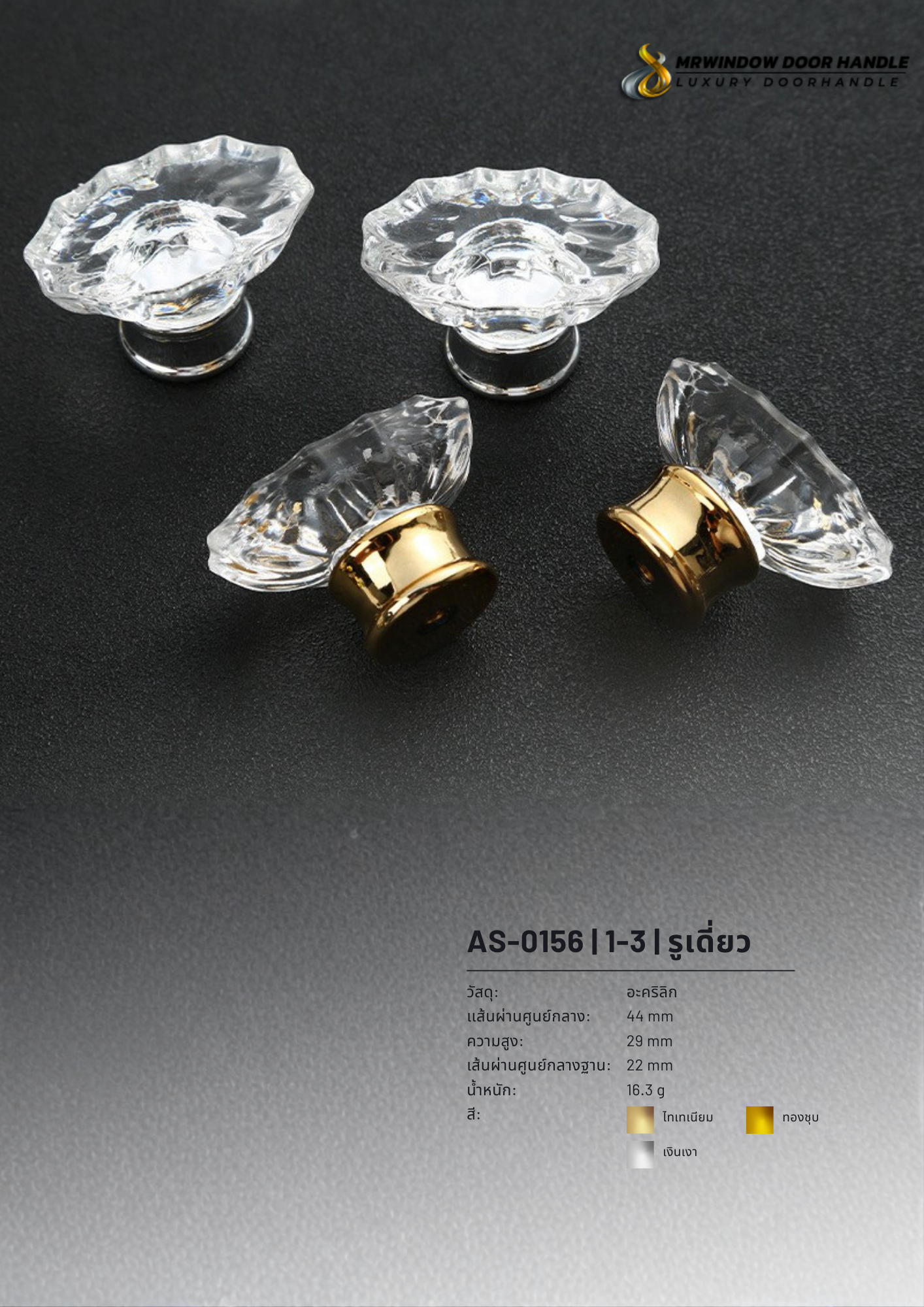มือจับเฟอร์นิเจอร์คริสตัล AS-0156 เป็นตัวเลือกที่เหมาะสำหรับผู้ที่ต้องการเพิ่มรายละเอียดเล็ก ๆ ที่สร้างความแตกต่างให้กับงานตกแต่งภายใน ไม่ว่าจะเป็นงานรีโนเวทบ้านใหม่ หรือโครงการตกแต่งเชิงพาณิชย์ สินค้ารุ่นนี้ช่วยเติมเต็มความหรูหราและคุณภาพให้กับเฟอร์นิเจอร์ได้อย่างสมบูรณ์แบบ