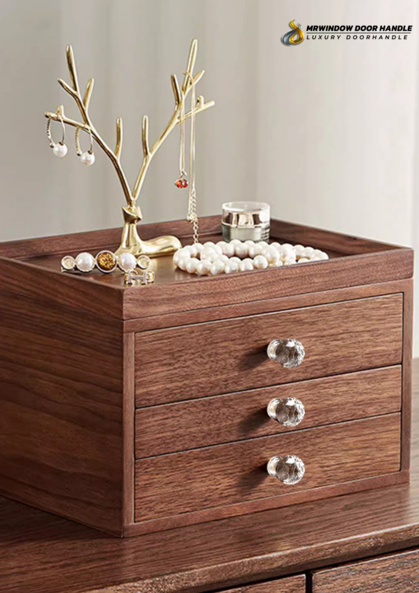 AS-0179 ปุ่มจับเฟอร์นิเจอร์คริสตัลใสฐานทอง คือไอเท็มที่ช่วย “ยกระดับ” เฟอร์นิเจอร์ให้ดูหรูขึ้นแบบเห็นผลทันที ด้วยหัวคริสตัลใสที่เจียระไนให้เกิดมิติและเงาสะท้อน เมื่อโดนแสงจะเกิดประกายสวย ดูคลีนและพรีเมียมในเวลาเดียวกัน จับคู่กับฐานสีทองที่เสริมความหรูแบบ Luxury Modern เหมาะกับงานตกแต่งทั้งสไตล์โมเดิร์น คลาสสิก มินิมอล ไปจนถึงวินเทจ
