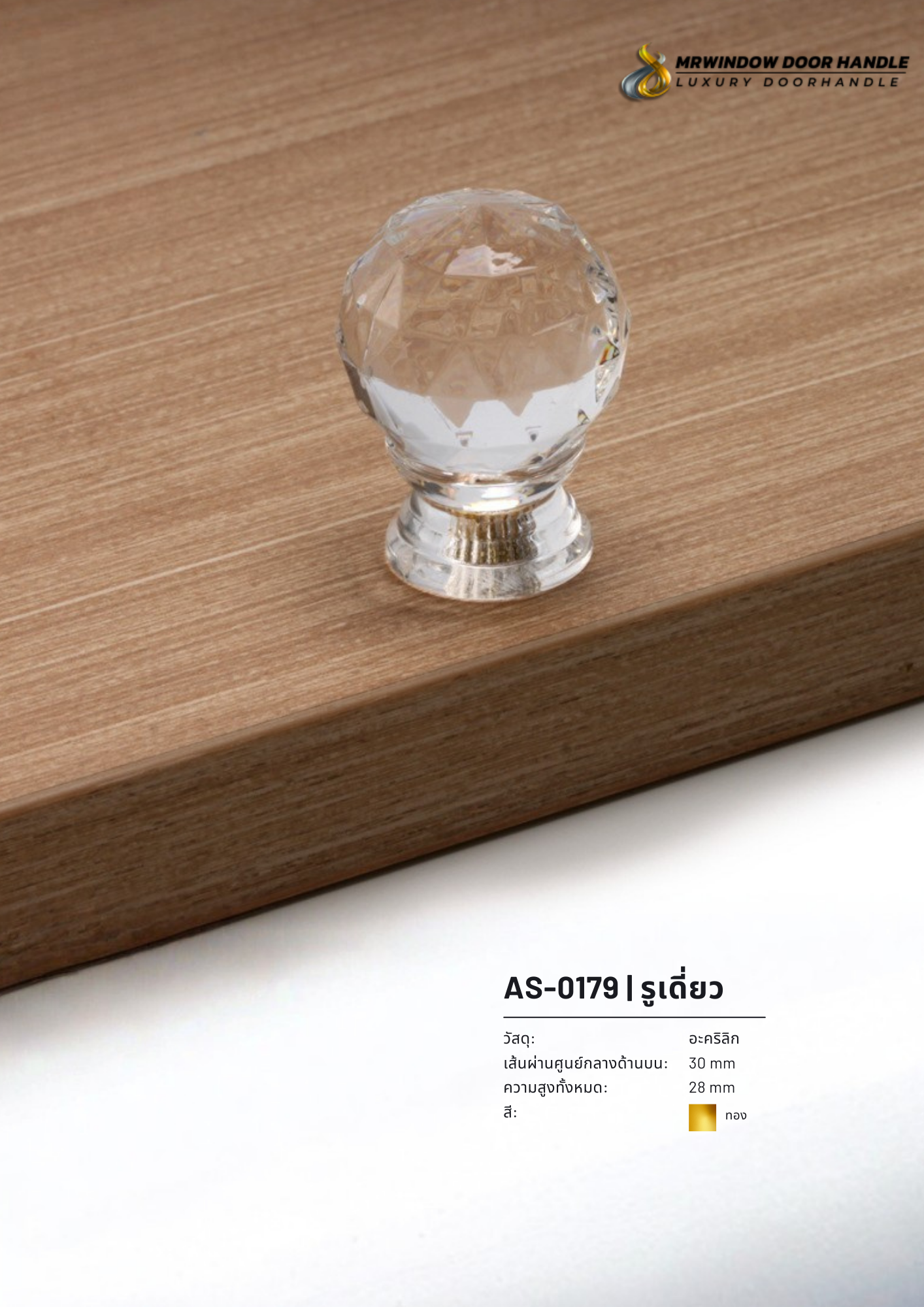 หัวคริสตัลอะคริลิกใส เล่นแสงสวย เพิ่มความหรูให้หน้าบาน