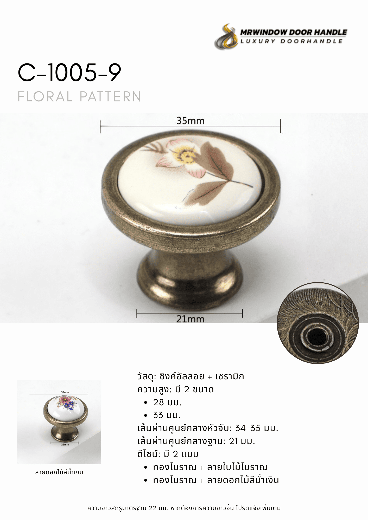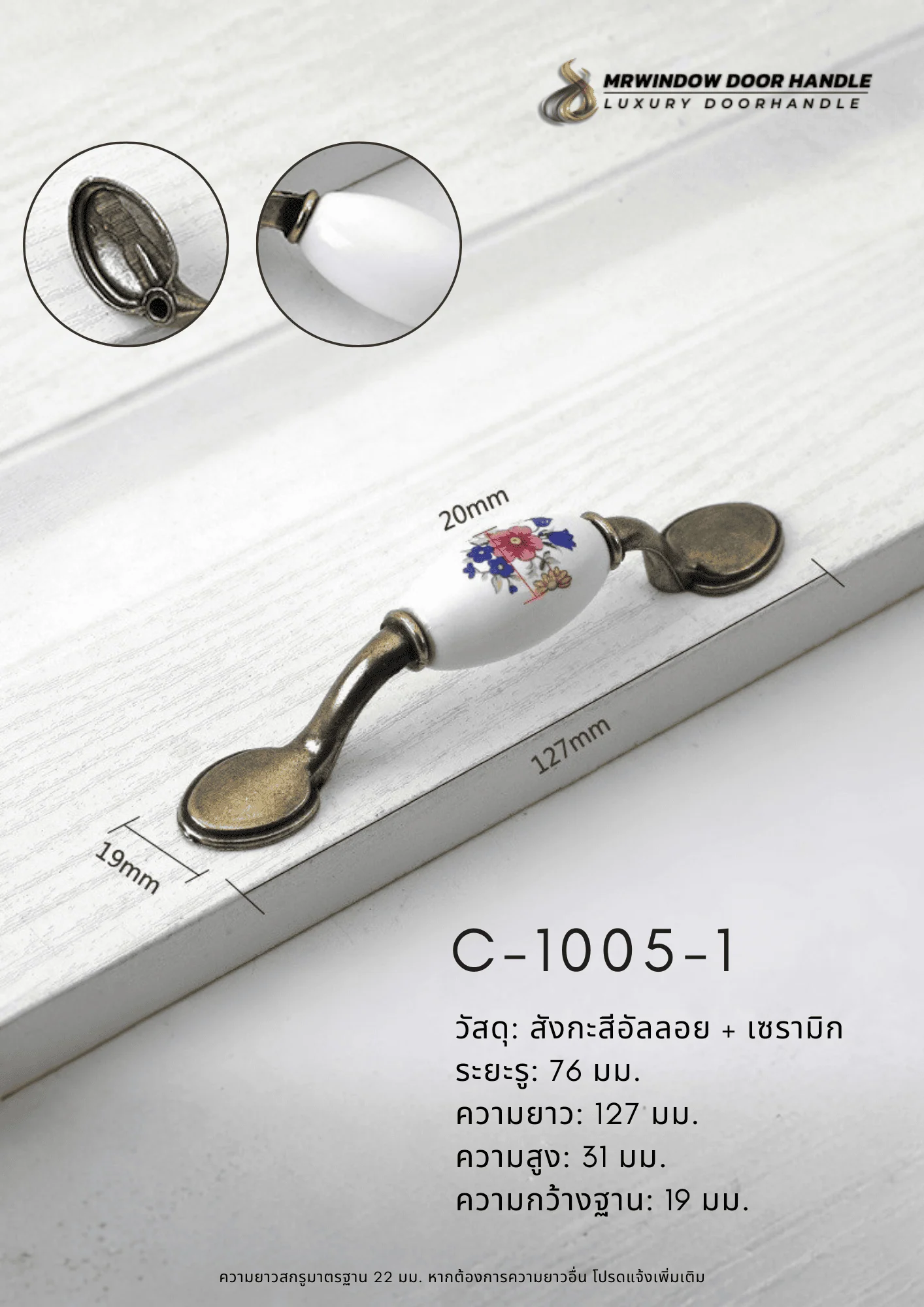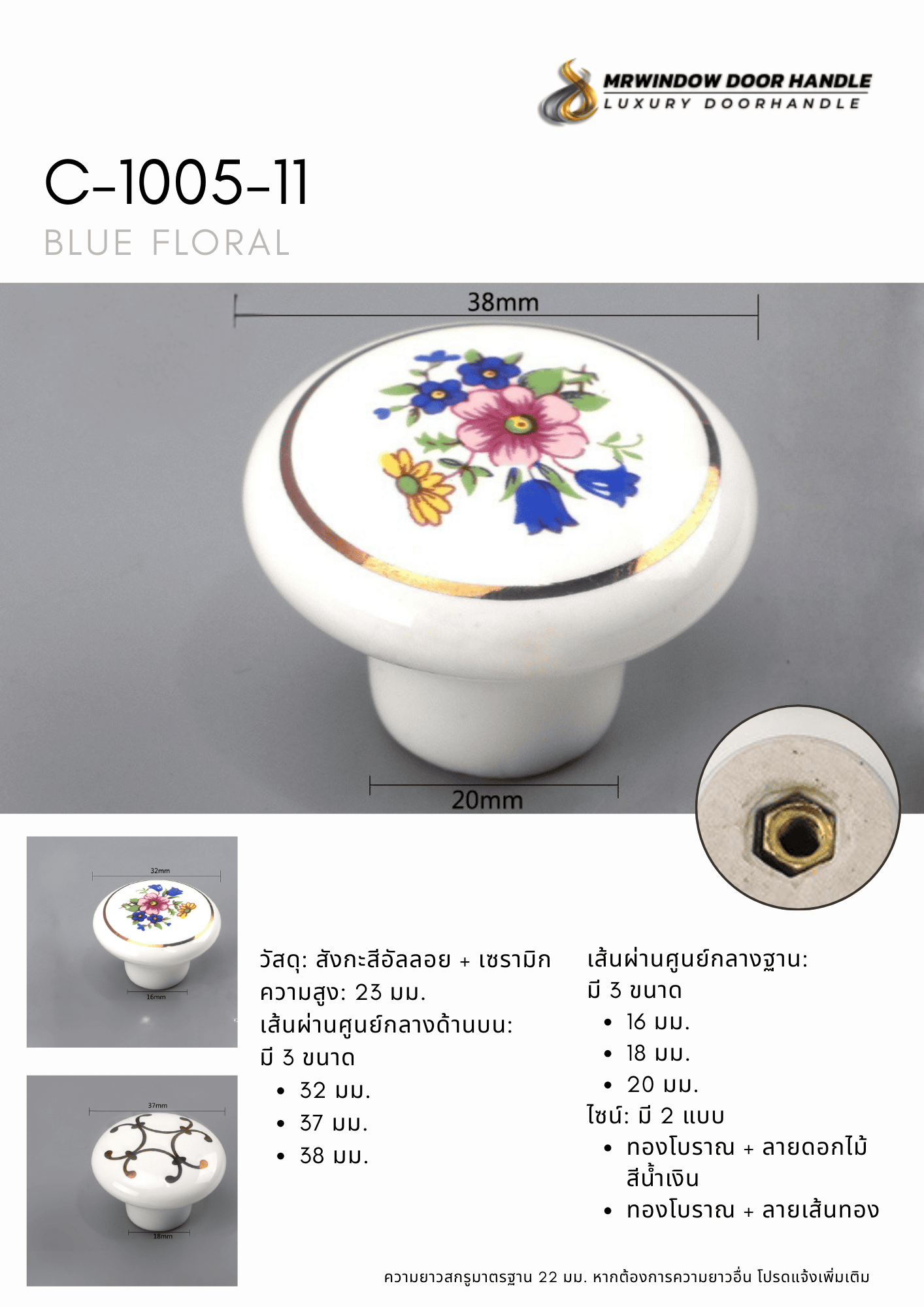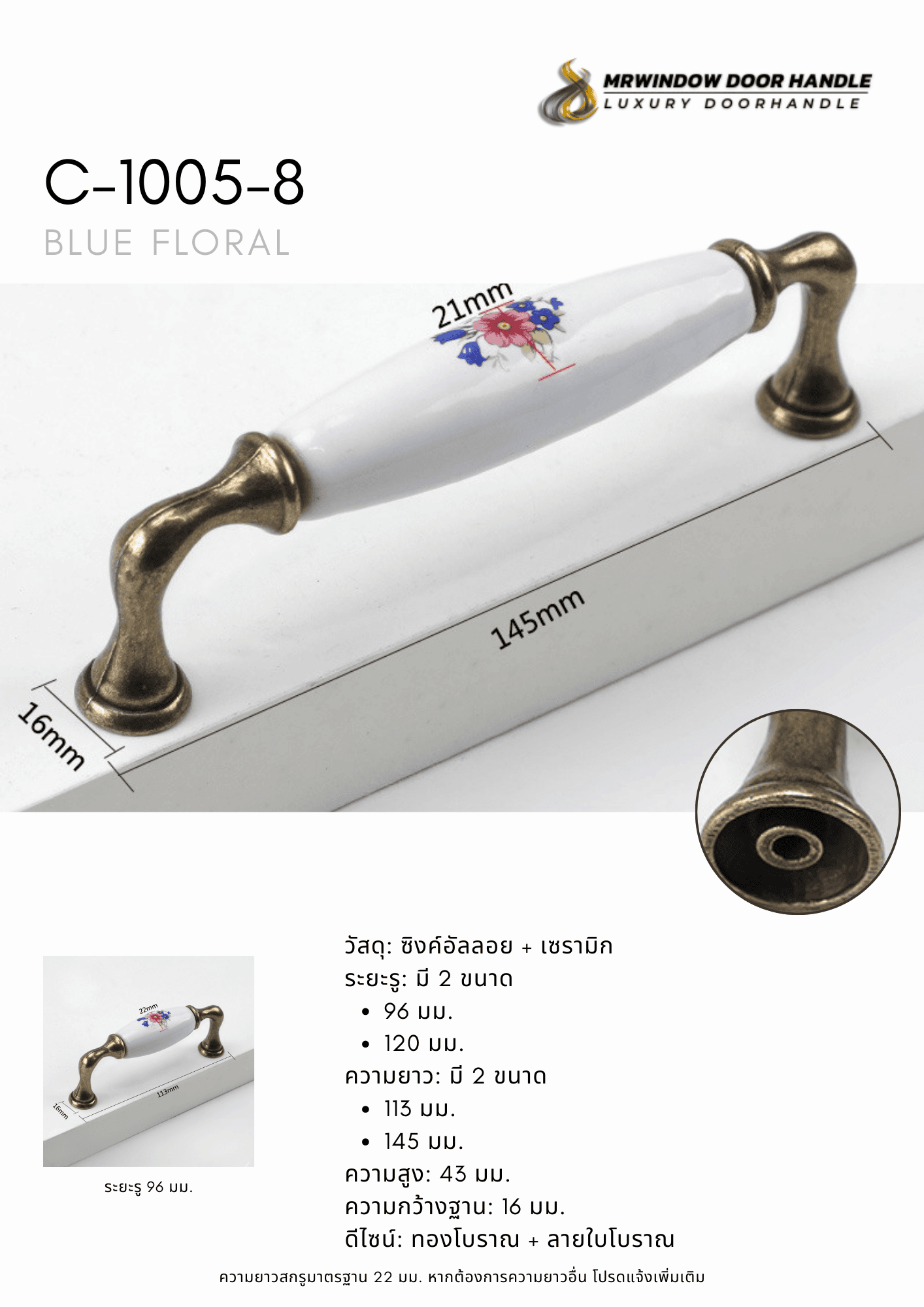 C-1005 Series มือจับตู้เซรามิกลายดอกไม้โทน Blue Floral สไตล์คลาสสิก C-1005 Series | มือจับเฟอร์นิเ...