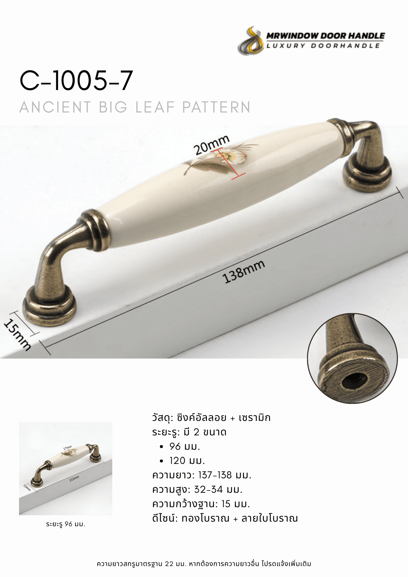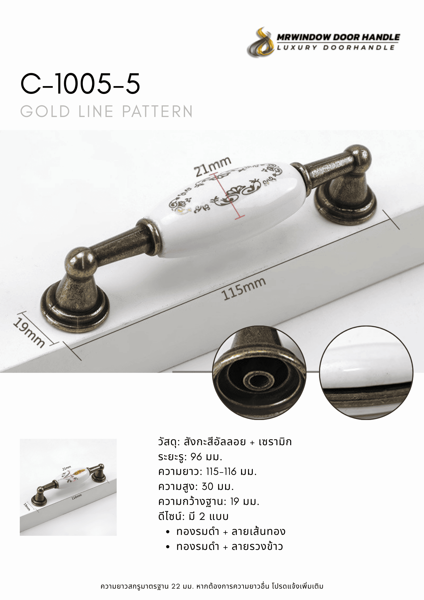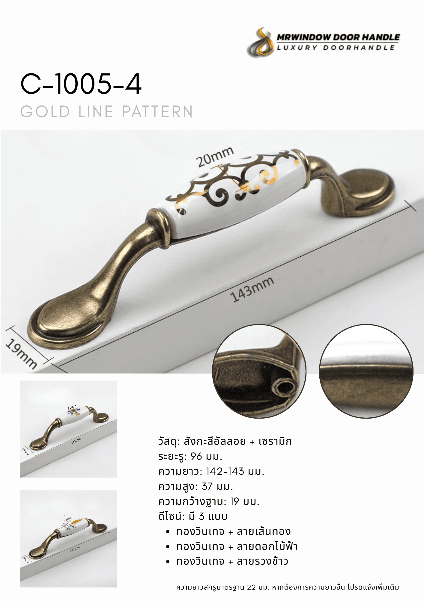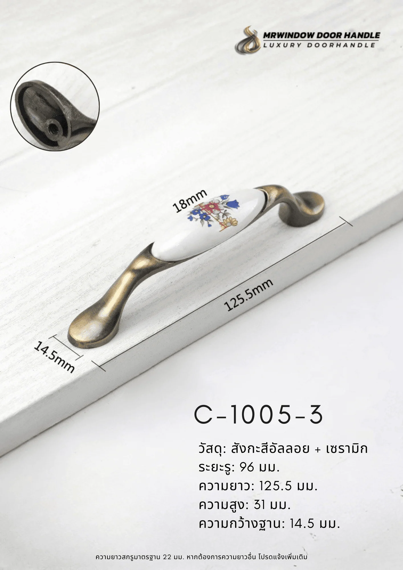 C-1005 Series มือจับตู้เซรามิกลายดอกไม้โทน Blue Floral สไตล์คลาสสิก C-1005 Series | มือจับเฟอร์นิเ...