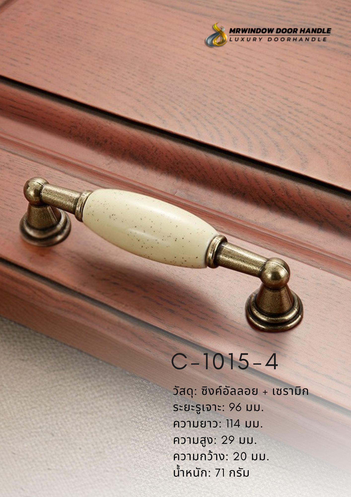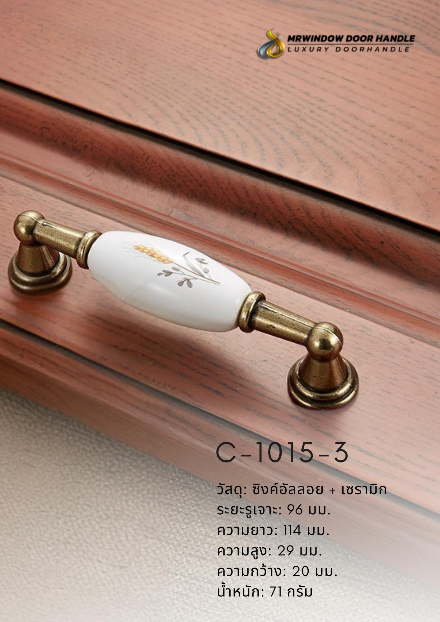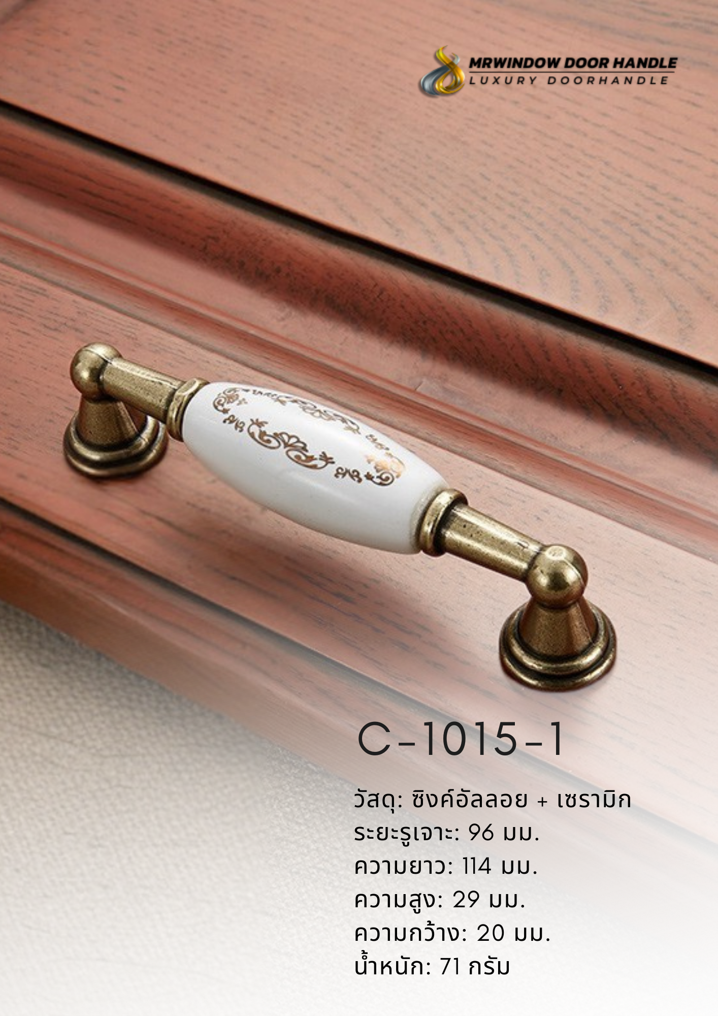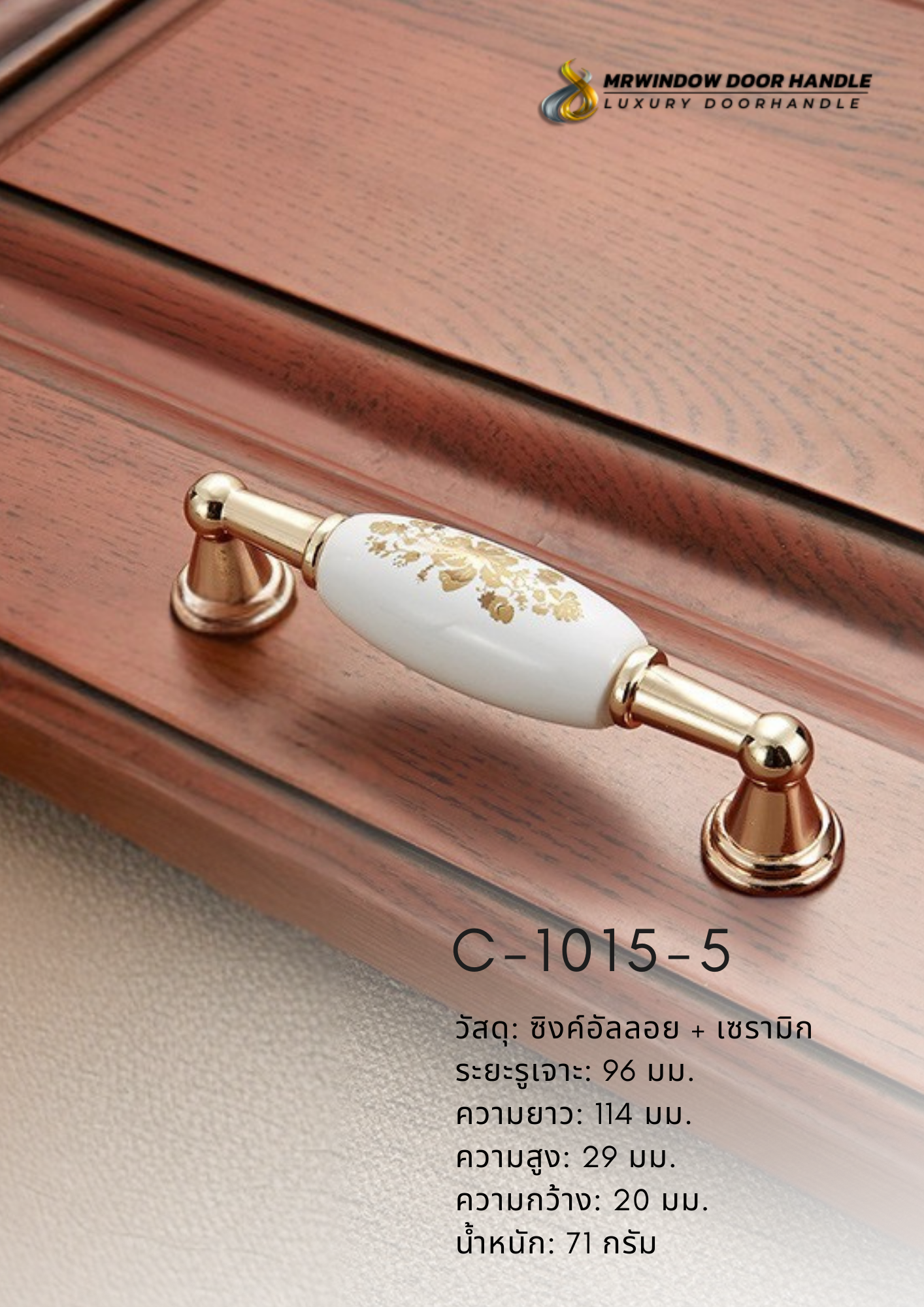 C-1015 Series คือชุดมือจับเฟอร์นิเจอร์เซรามิกระดับพรีเมียม ที่ออกแบบมาเพื่อตอบโจทย์งานตกแต่งภายในที่ต้องการความหรูหราแบบคลาสสิกเหนือกาลเวลา ตัวมือจับผลิตจาก ซิงค์อัลลอยคุณภาพสูง ผสานกับ เซรามิกลวดลายประณีต ให้ผิวสัมผัสเรียบเนียน แข็งแรง และใช้งานได้ยาวนาน