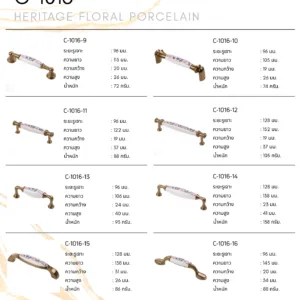 คือคอลเลกชันมือจับเฟอร์นิเจอร์ระดับพรีเมียม ที่ได้รับแรงบันดาลใจจากศิลปะคลาสสิกยุโรป ผสมผสานความงดงามของลวดลายดอกไม้บนเซรามิกเข้ากับโครงสร้างโลหะซิงค์อัลลอยคุณภาพสูง ให้ความรู้สึกหรูหรา อบอุ่น และมีเอกลักษณ์เฉพาะตัว