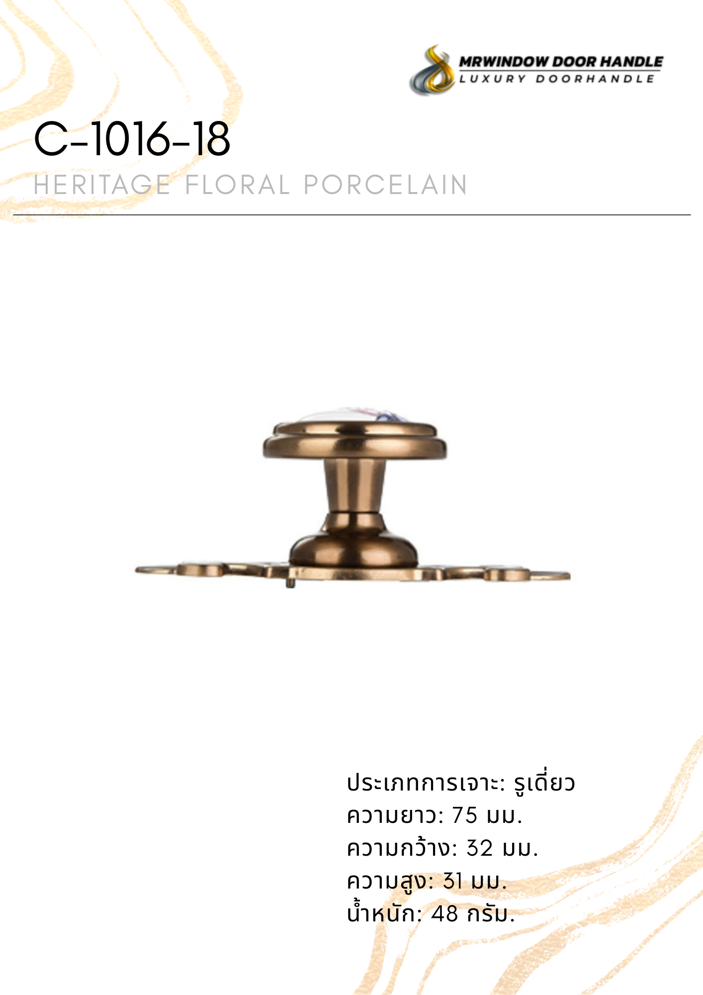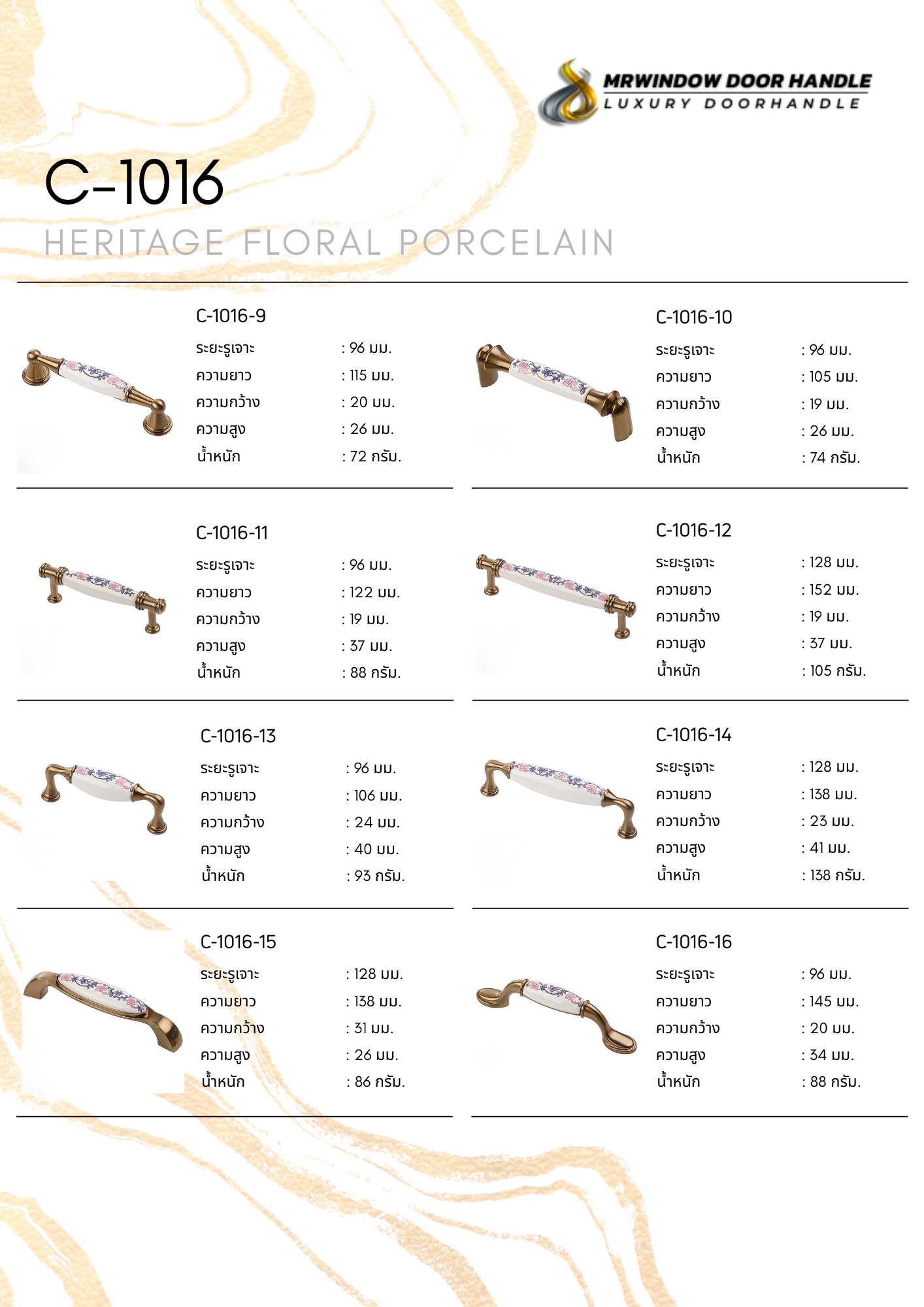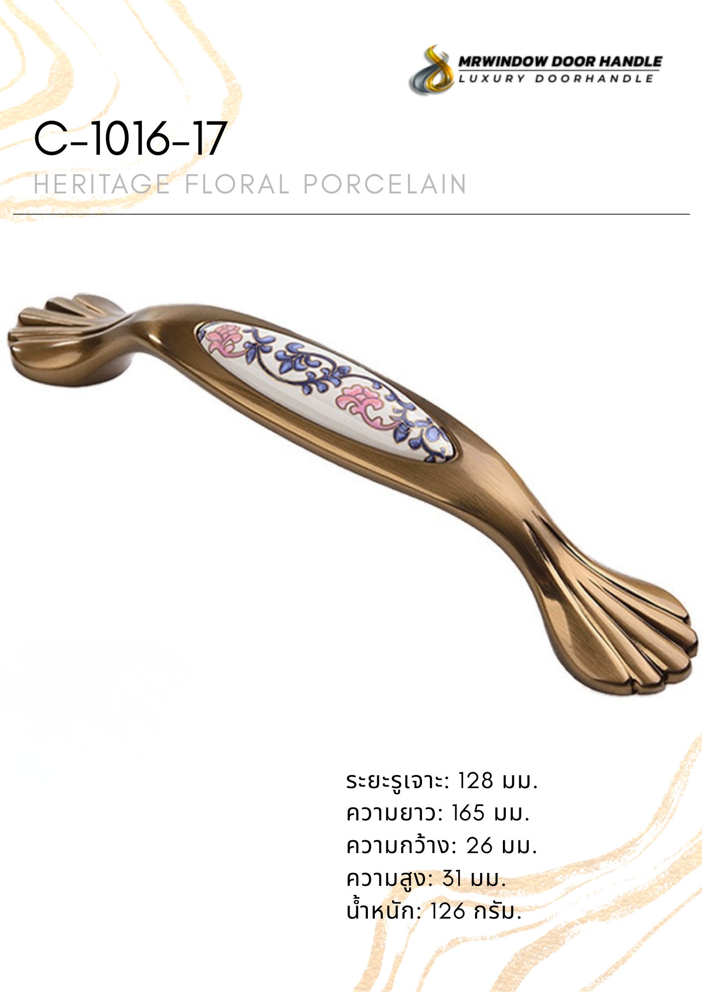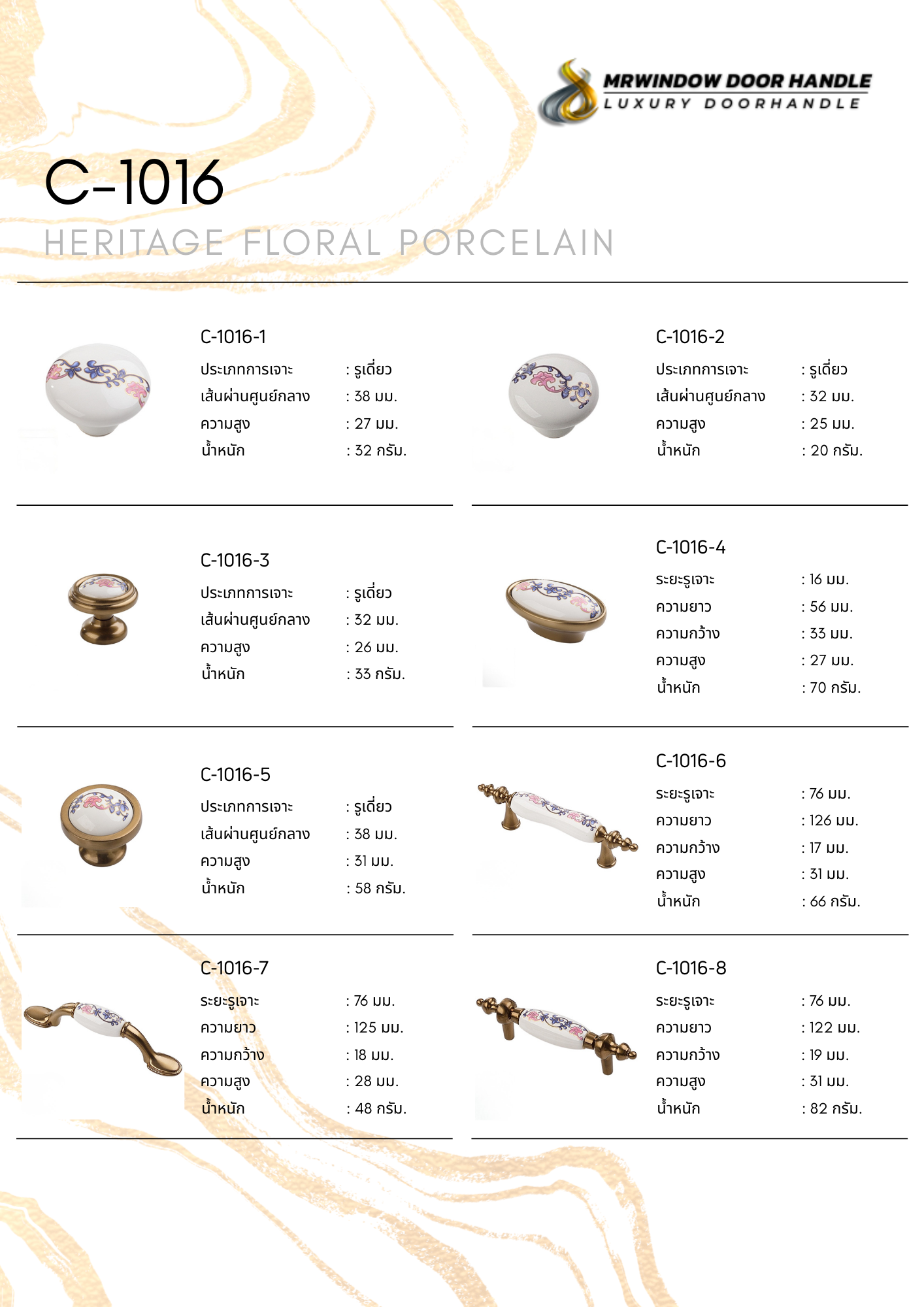 คือคอลเลกชันมือจับเฟอร์นิเจอร์ระดับพรีเมียม ที่ได้รับแรงบันดาลใจจากศิลปะคลาสสิกยุโรป ผสมผสานความงดงามของลวดลายดอกไม้บนเซรามิกเข้ากับโครงสร้างโลหะซิงค์อัลลอยคุณภาพสูง ให้ความรู้สึกหรูหรา อบอุ่น และมีเอกลักษณ์เฉพาะตัว