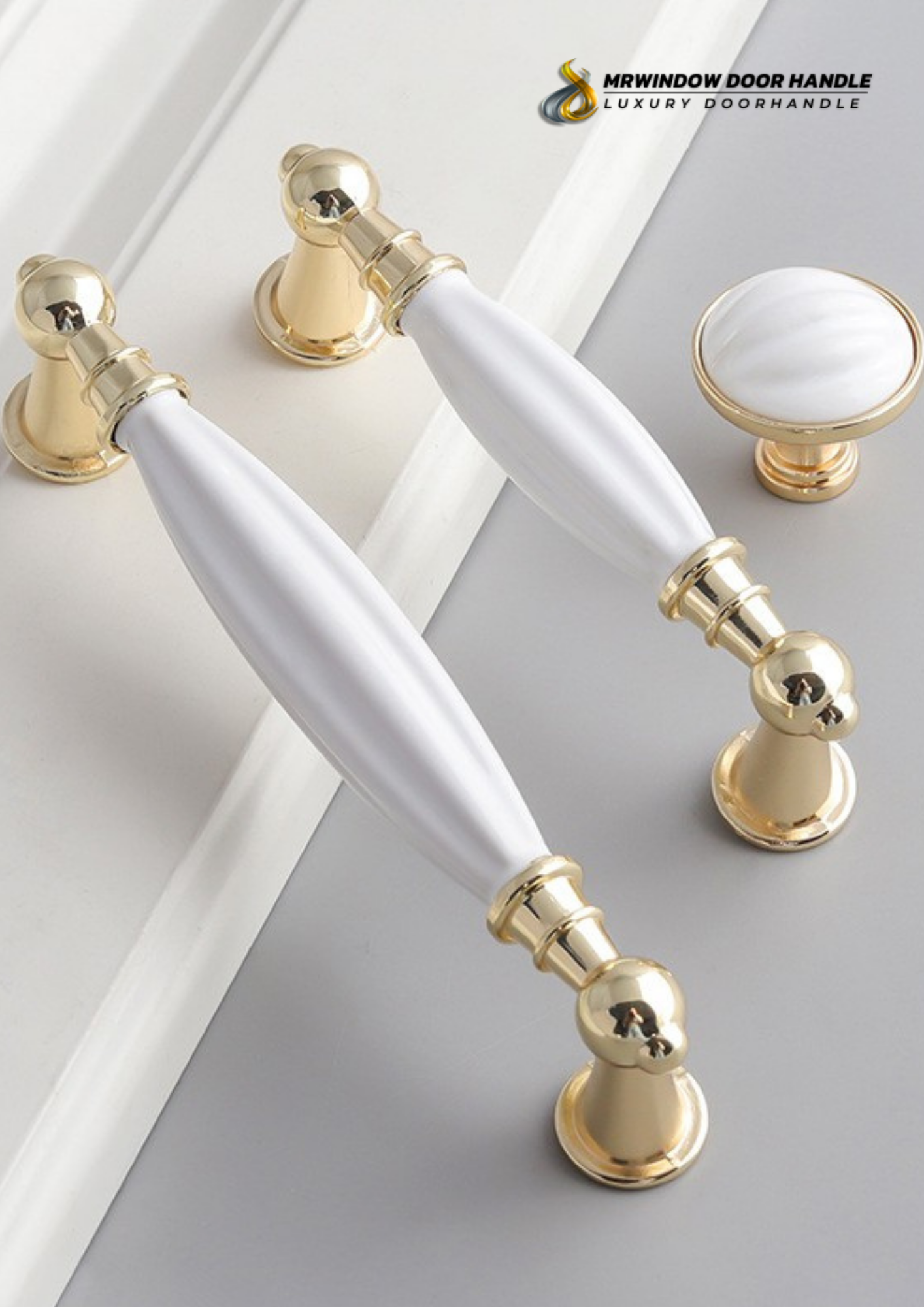 ตัวด้ามจับผลิตจาก เซรามิกคุณภาพสูง ผิวเรียบเนียน สีขาวสะอาด ให้ความรู้สึกหรู สุภาพ และอบอุ่น ผสานกับฐานและขาจับ ซิงค์อัลลอยเคลือบสีทองเงา (Gold Finish) แข็งแรง ทนทาน และให้ภาพลักษณ์พรีเมียมในทุกมุมมอง