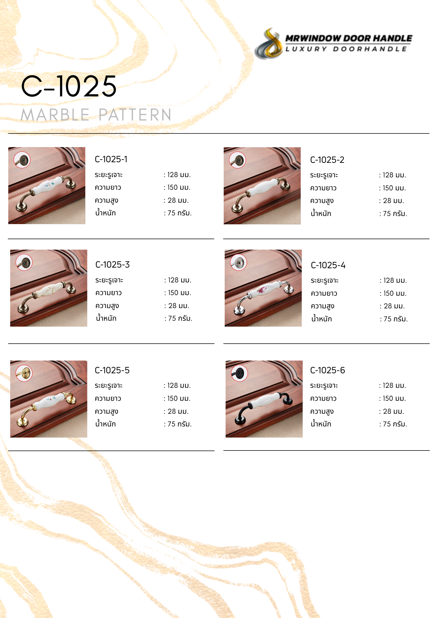 C-1025 Series คือคอลเลกชันมือจับเฟอร์นิเจอร์ ที่ผสมผสานงานดีไซน์คลาสสิกเข้ากับวัสดุเซรามิกคุณภาพสูง ถ่ายทอดความหรูหราอย่างมีรสนิยม เหมาะสำหรับงานตกแต่งภายในที่ต้องการรายละเอียดพิเศษและความประณีตในทุกมุมมอง