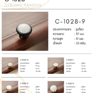 C-1028 Series คือคอลเลกชันมือจับและลูกบิดเซรามิกระดับพรีเมียม ที่ถูกสร้างสรรค์ขึ้นเพื่อสะท้อนรสนิยมอันประณีตและความหรูหราที่ไม่ขึ้นกับกาลเวลา ด้วยการผสมผสานระหว่างศิลปะงานเซรามิกคุณภาพสูง และโครงสร้างโลหะที่แข็งแรง ทนทาน และให้ความรู้สึกมั่นคงทุกครั้งที่สัมผัส