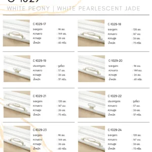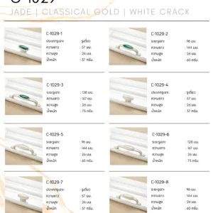 มือจับเซรามิก C-1029 Series คือคอลเลกชันที่ออกแบบมาเพื่อเติมเต็มงานตกแต่งภายในระดับพรีเมียม ด้วยแรงบันดาลใจจากศิลปะคลาสสิกยุโรป ผสานความอ่อนละมุนของโทนสีขาวและทองเข้ากับลวดลายเซรามิกที่มีเอกลักษณ์เฉพาะตัว ไม่ว่าจะเป็นลายหินอ่อน ลายหยก หรือพื้นผิว White Crack ที่ให้ความรู้สึกหรูหราอย่างเป็นธรรมชาติ