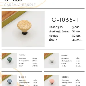 C-1035 Ceramic Handle คือมือจับเซรามิกที่ออกแบบมาเพื่อยกระดับงานตกแต่งเฟอร์นิเจอร์ให้ดูมีชีวิตชีวาและมีเอกลักษณ์มากยิ่งขึ้น ด้วยลวดลายดอกไม้แบบคลาสสิกที่ถูกปั้นและเคลือบอย่างประณีต ทำให้ผิวสัมผัสเรียบเนียน เงางาม และมีมิติที่สวยงามแตกต่างจากมือจับทั่วไป