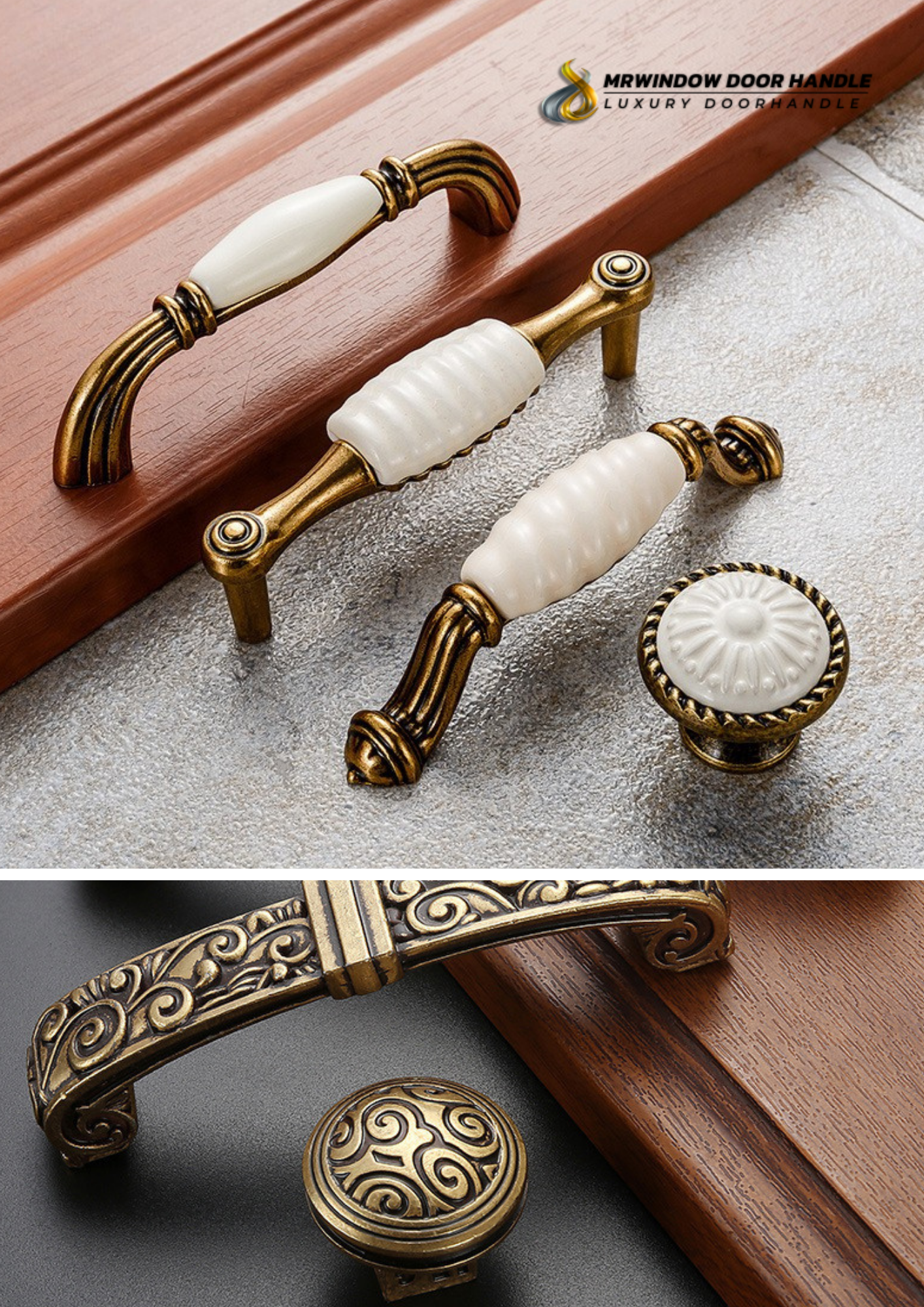 ตัวมือจับผลิตจาก เซรามิกสีขาวคุณภาพสูง ให้ผิวสัมผัสเรียบเนียน แข็งแรง ไม่เหลืองง่าย ตกแต่งด้วยลวดลายที่ให้ความรู้สึกอ่อนโยน หรูหรา และมีเอกลักษณ์ ผสานเข้ากับโครงโลหะสี Antique Yellow ซึ่งผ่านกระบวนการเคลือบผิวอย่างประณีต ช่วยเพิ่มความลึกของสีและความคลาสสิกแบบเฟอร์นิเจอร์ยุโรปแท้
