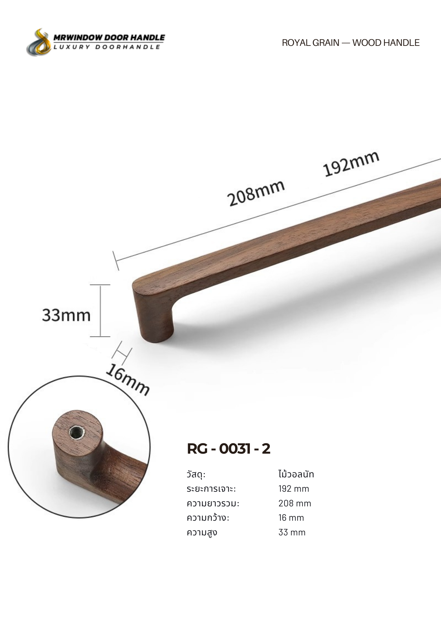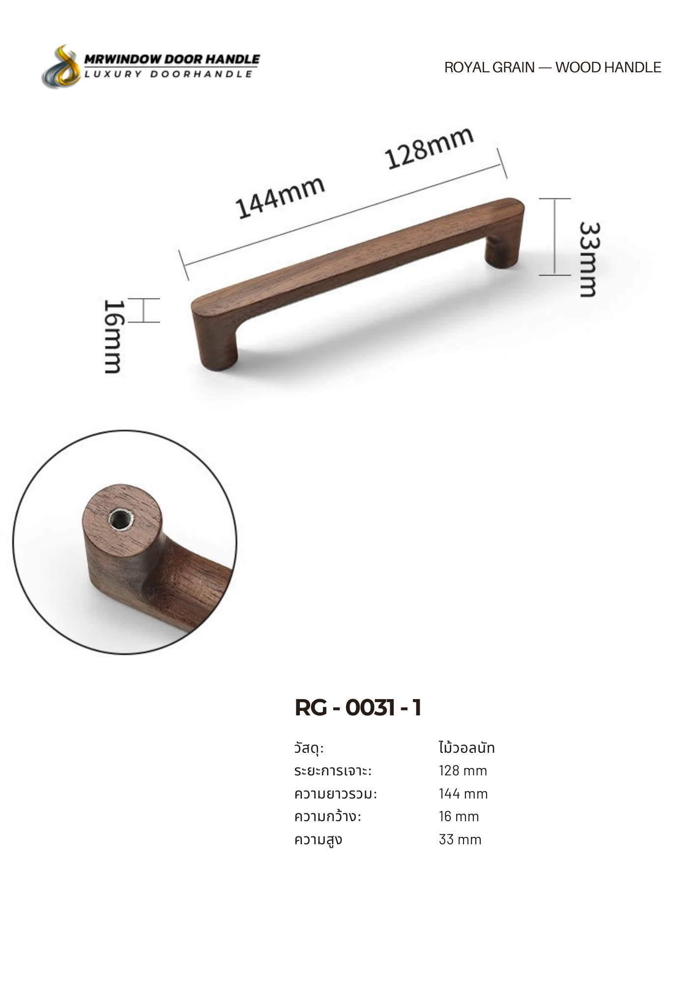 มือจับเฟอร์นิเจอร์ไม้แท้ RG-0031 ถูกออกแบบมาเพื่อเติมเต็มความเรียบหรูให้กับงานตกแต่งภายใน ด้วยวัสดุไม้ Walnut แท้ที่ให้ลวดลายธรรมชาติสวยงาม โทนสีอบอุ่น และผิวสัมผัสที่ดูพรีเมียม เหมาะกับบ้านสไตล์โมเดิร์น มินิมอล สแกนดิเนเวียน และลักซ์ชัวรี