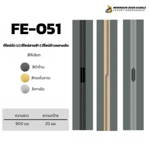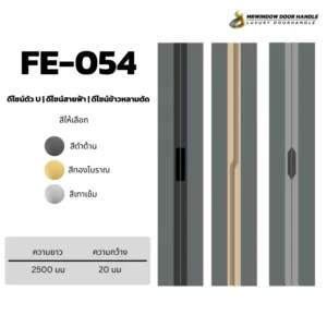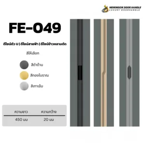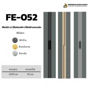 มือจับฝัง FE-048 – FE-055 ออกแบบมาเพื่อความเรียบหรูแบบโมเดิร์น เหมาะสำหรับบานเลื่อนและหน้าบานที่ต้องการความมินิมอลเป็นพิเศษ ตัวมือจับติดตั้งแบบฝัง ช่วยให้หน้าบานดู “เนียนเป็นชิ้นเดียว” ลดปัญหาการเกี่ยวเสื้อผ้าหรือชนกับมือจับ เหมาะกับงานตู้เสื้อผ้า บานเลื่อนกั้นห้อง บานเฟรมอลูมิเนียม และงานเฟอร์นิเจอร์บิวท์อิน