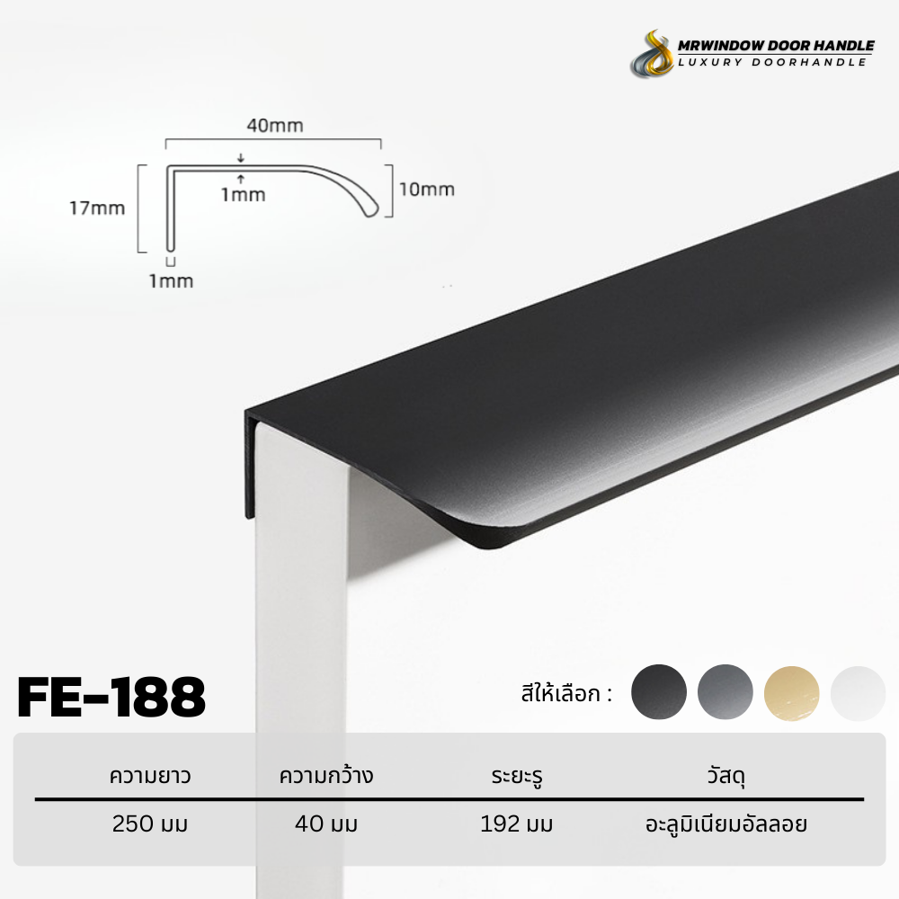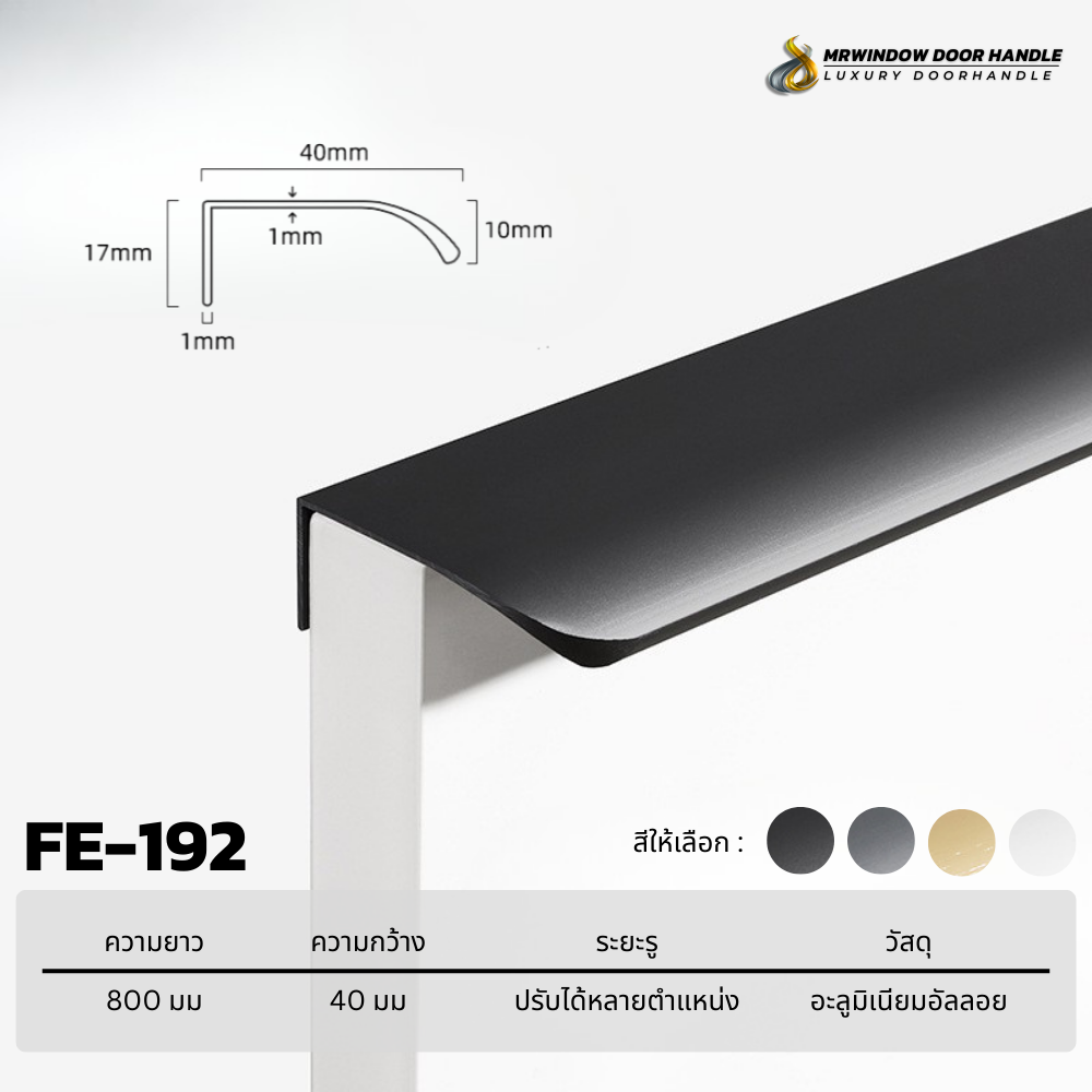 ตัวมือจับถูกออกแบบให้ติดตั้งแบบซ่อนแนบไปกับขอบบานหรือหน้าลิ้นชัก ช่วยลดความเกะกะจากมือจับแบบยื่น เพิ่มภาพลักษณ์ที่ดูมินิมอล ทันสมัย และเป็นมืออาชีพ เหมาะอย่างยิ่งสำหรับตู้ครัว ตู้เสื้อผ้า ลิ้นชัก โต๊ะทำงาน รวมถึงงานโครงการระดับพรีเมียม