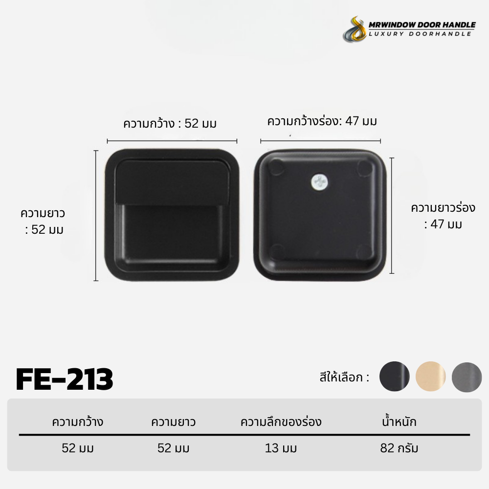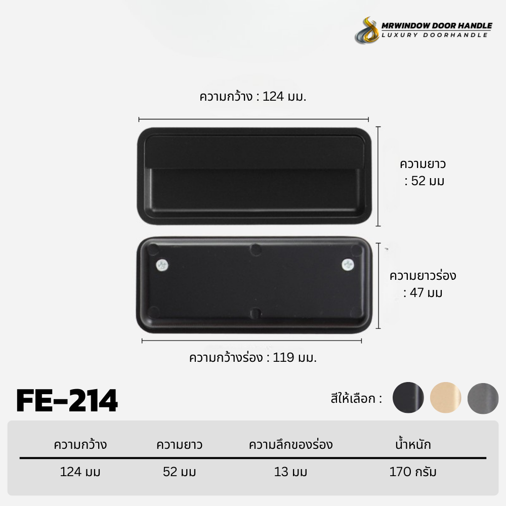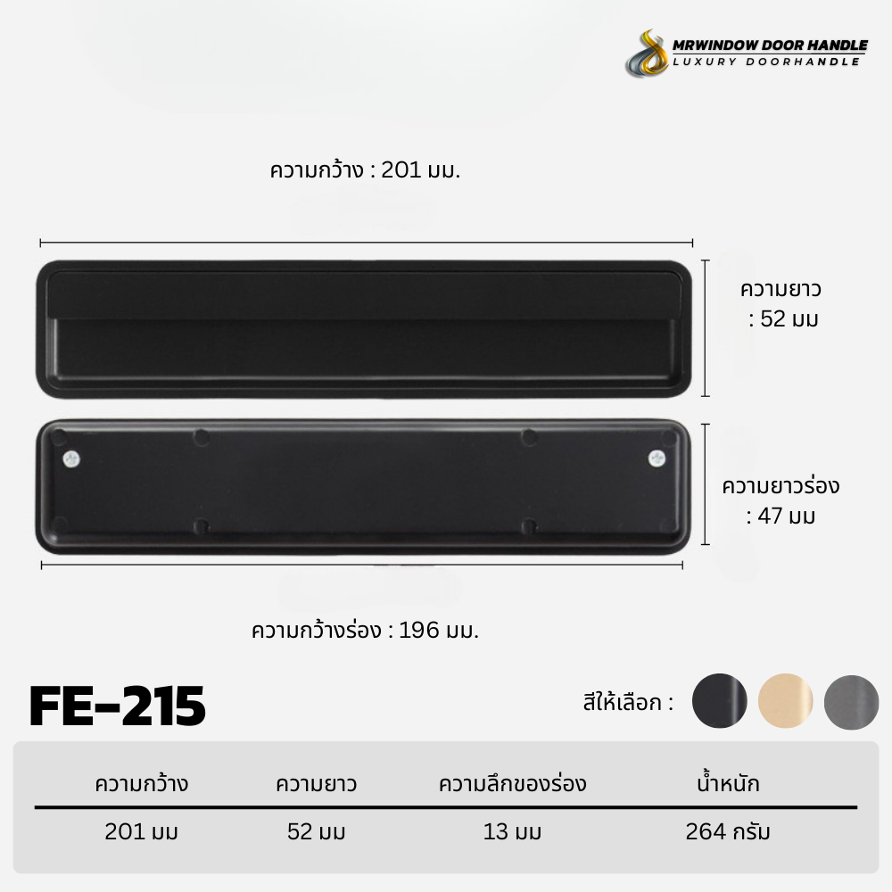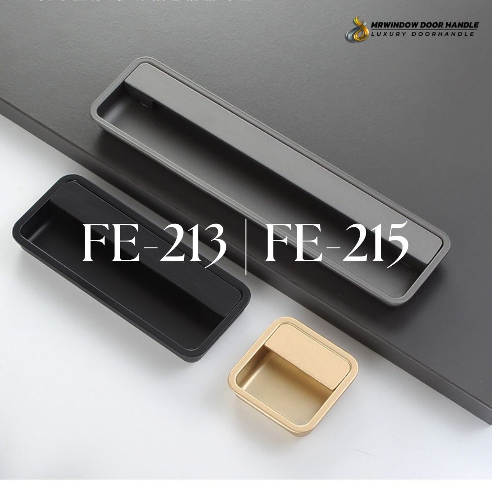 มือจับฝัง FE-213 / FE-214 / FE-215 ชุดมือจับฝังที่ออกแบบมาเพื่อตอบโจทย์งานเฟอร์นิเจอร์และงานบิวท์อินระดับพรีเมียม ด้วยรูปทรงเรียบง่าย แต่ให้สัมผัสการใช้งานที่ดีเยี่ยม ติดตั้งแบบฝังเข้าไปในบาน ช่วยลดความนูนของหน้าบาน เพิ่มความปลอดภัย และสร้างภาพลักษณ์ที่ทันสมัยให้กับพื้นที่ใช้งาน
