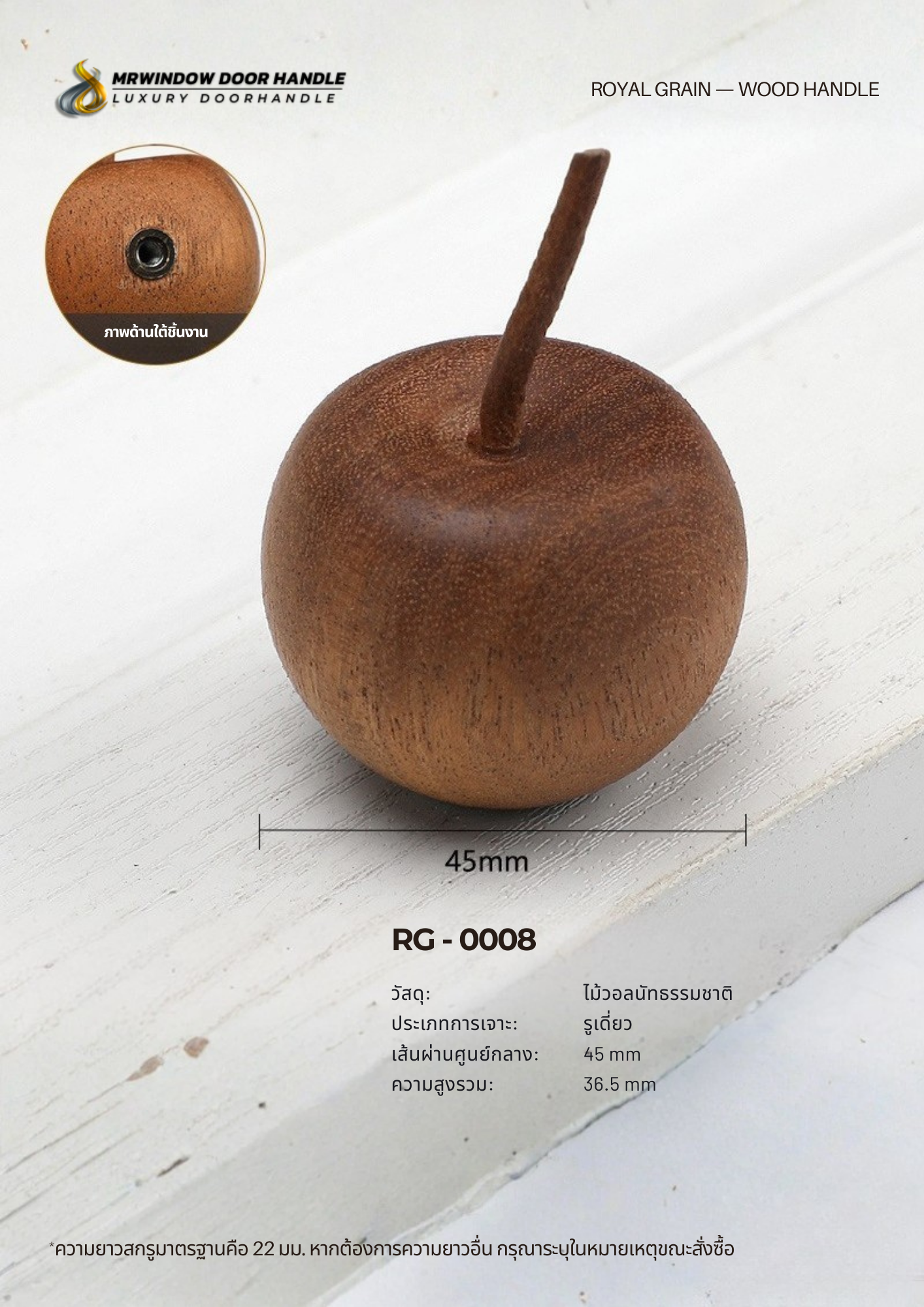 RG-0008 มือจับไม้แท้ ออกแบบในรูปทรงผลไม้ที่มีเอกลักษณ์เฉพาะตัว ช่วยเพิ่มความน่าสนใจและความอบอุ่นให้กับเฟอร์นิเจอร์ภายในบ้าน เหมาะสำหรับการตกแต่งตู้เสื้อผ้า ตู้เก็บของ ลิ้นชัก โต๊ะเครื่องแป้ง หรือเฟอร์นิเจอร์ในห้องเด็ก ร้านคาเฟ่ และงานตกแต่งสไตล์ธรรมชาติ