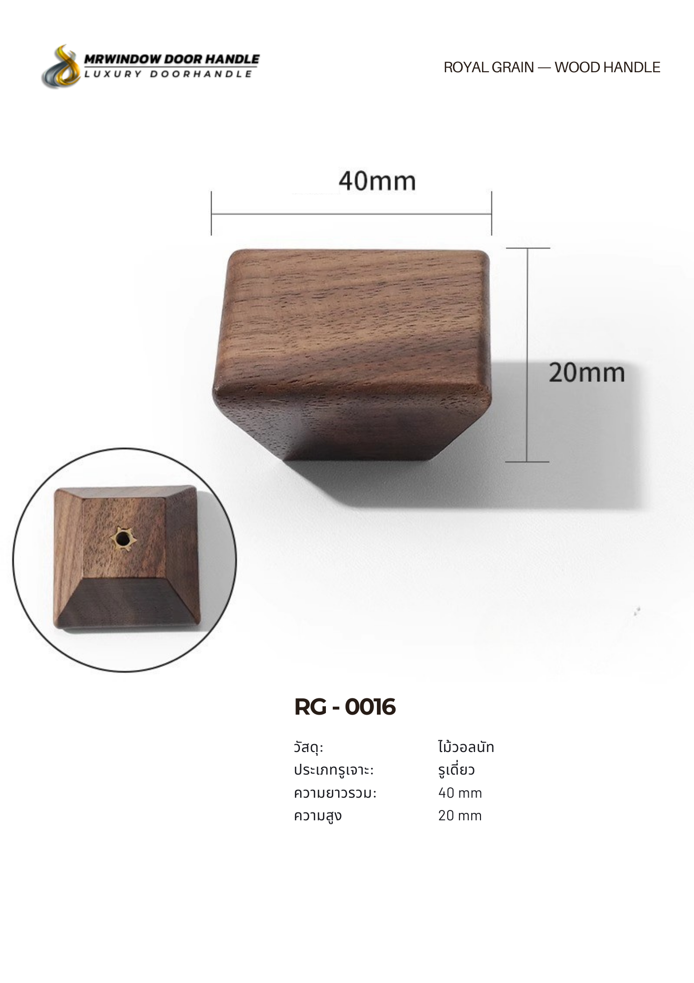 RG-0016 มือจับเฟอร์นิเจอร์ไม้แท้ ที่ผลิตจาก ไม้วอลนัทแท้ ดีไซน์ทรงเหลี่ยมเรียบหรู ให้ลุคอบอุ่นแบบธรรมชาติ เหมาะสำหรับงานตกแต่งภายในทุกสไตล์ ไม่ว่าจะเป็นมินิมอล โมเดิร์น ลักชัวรี่ หรือสไตล์ญี่ปุ่น (Muji / Nordic)