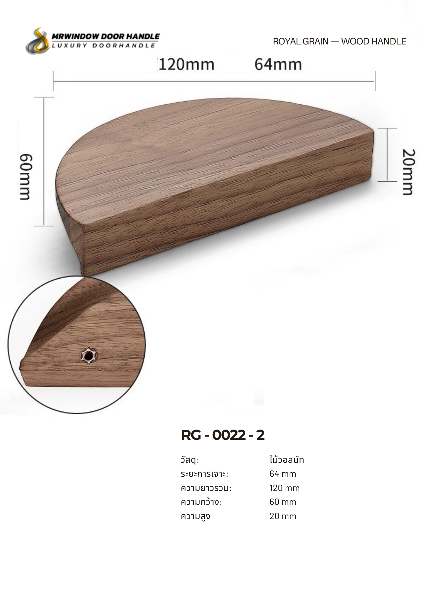 มือจับไม้วอลนัทแท้ ลายไม้ธรรมชาติสวยงาม
