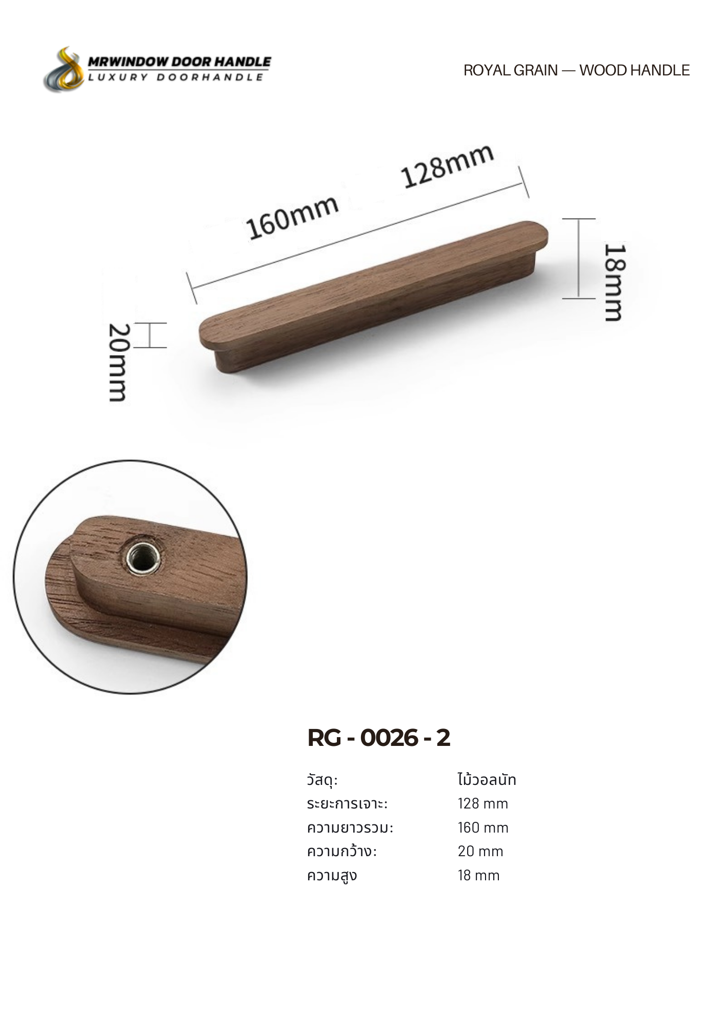มือจับประตู RG-0026 ถูกออกแบบมาเพื่อตอบโจทย์งานตกแต่งภายในที่ต้องการความเรียบหรูอย่างเป็นธรรมชาติ ตัวมือจับผลิตจาก ไม้จริงคุณภาพสูง ผ่านการเก็บงานอย่างประณีต ให้ผิวสัมผัสเรียบเนียน พร้อมโชว์ลายไม้แท้ที่มีเอกลักษณ์ในแต่ละชิ้น