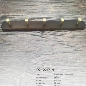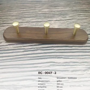 RG-0047 คือ “ราวแขวนผนัง” ที่ออกแบบมาให้เรียบหรู ดูแพง แต่ใช้งานได้จริงในทุกวัน โทนไม้ วอลนัทดำ ให้ความรู้สึกอบอุ่นแบบโมเดิร์นลักชัวรี ตัดกับหัวตะขอ ซิงค์อัลลอยสีทอง ที่ช่วยยกระดับภาพรวมให้ดูพรีเมียมทันที เหมาะมากสำหรับงานตกแต่งสไตล์ Modern, Japandi, Minimal Luxury, Nordic และ Boutique Hotel