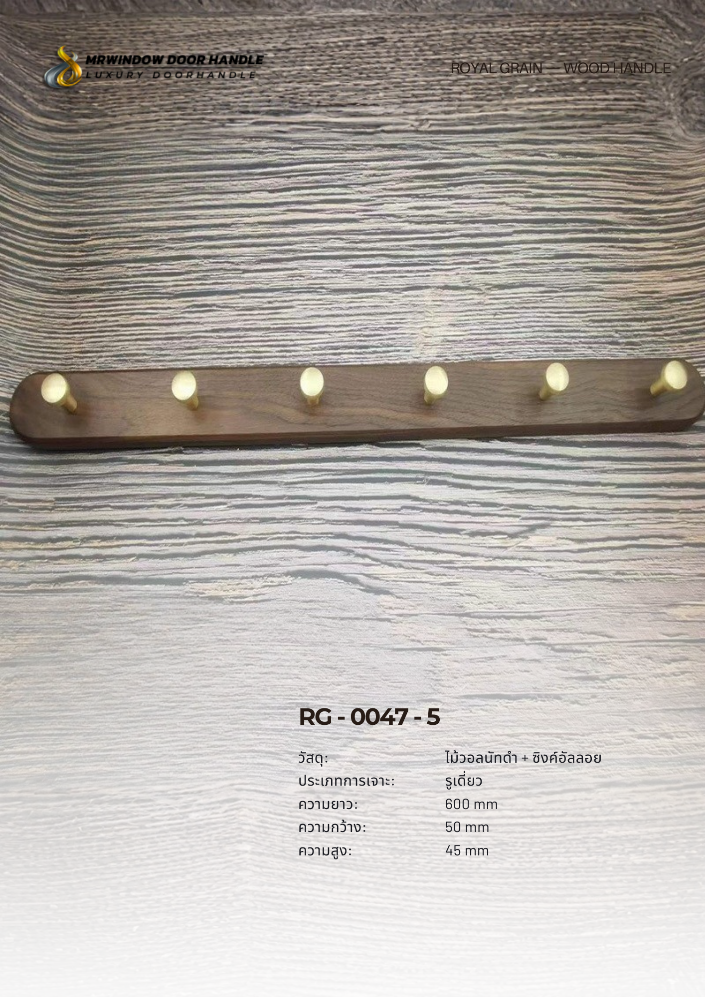 RG-0047 คือ “ราวแขวนผนัง” ที่ออกแบบมาให้เรียบหรู ดูแพง แต่ใช้งานได้จริงในทุกวัน โทนไม้ วอลนัทดำ ให้ความรู้สึกอบอุ่นแบบโมเดิร์นลักชัวรี ตัดกับหัวตะขอ ซิงค์อัลลอยสีทอง ที่ช่วยยกระดับภาพรวมให้ดูพรีเมียมทันที เหมาะมากสำหรับงานตกแต่งสไตล์ Modern, Japandi, Minimal Luxury, Nordic และ Boutique Hotel