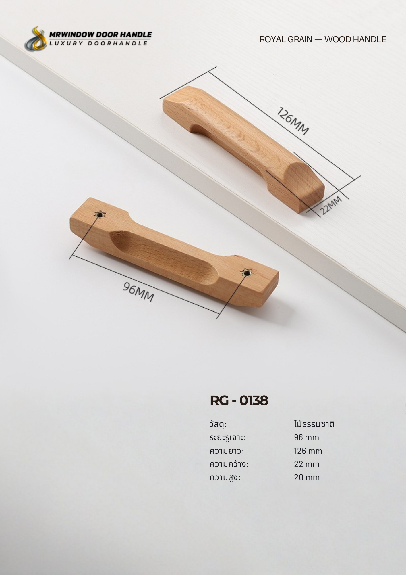 มือจับไม้ธรรมชาติ รุ่น RG-0138 ออกแบบมาเพื่อเติมเต็มความอบอุ่นและความเรียบหรูให้กับเฟอร์นิเจอร์ของคุณ ด้วยดีไซน์ทรงเรียบสไตล์มินิมอล ผสานความงดงามของลายไม้ธรรมชาติแท้ที่มีเอกลักษณ์เฉพาะตัวในแต่ละชิ้น ทำให้ทุกชิ้นงานมีเสน่ห์และไม่ซ้ำกัน