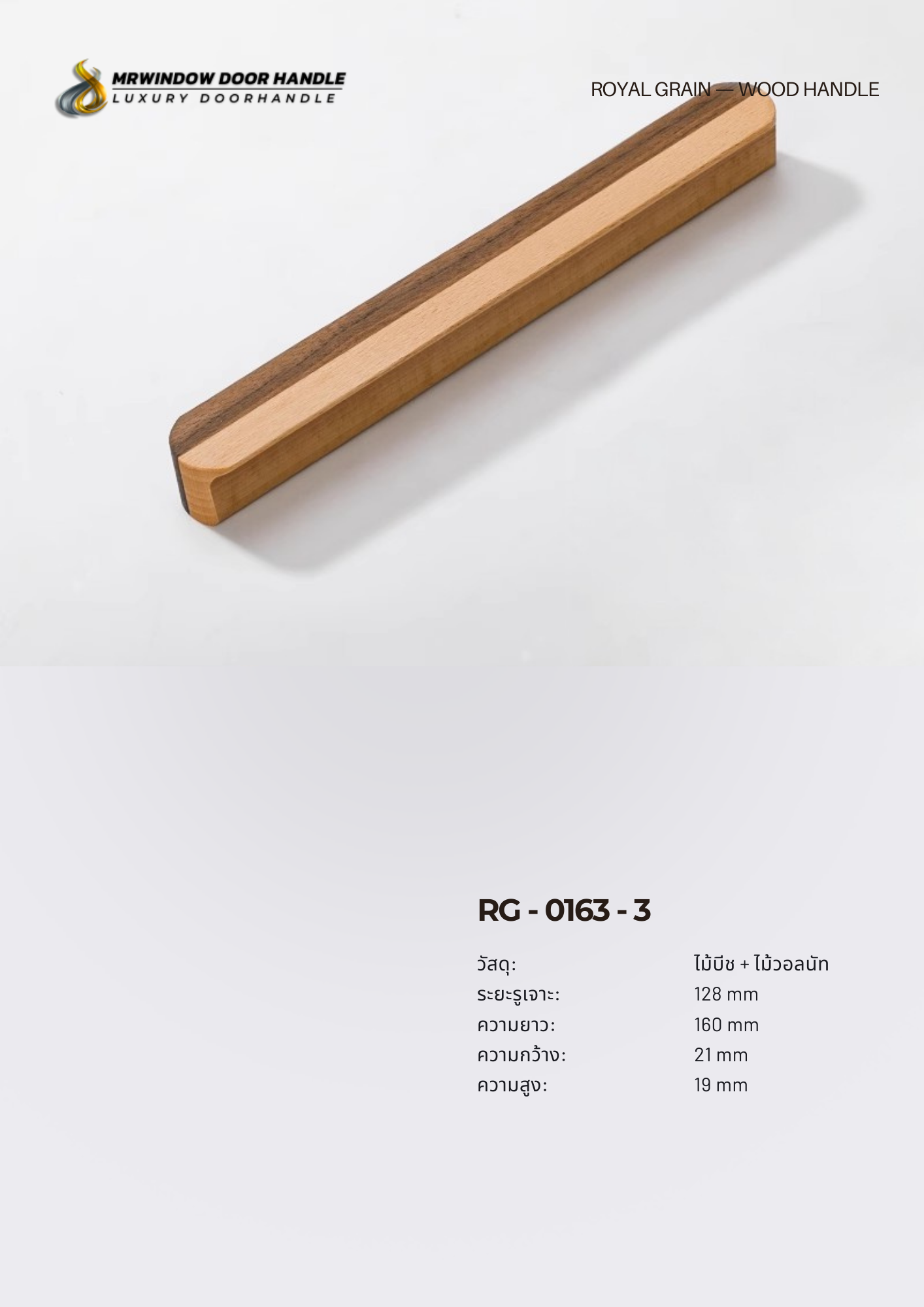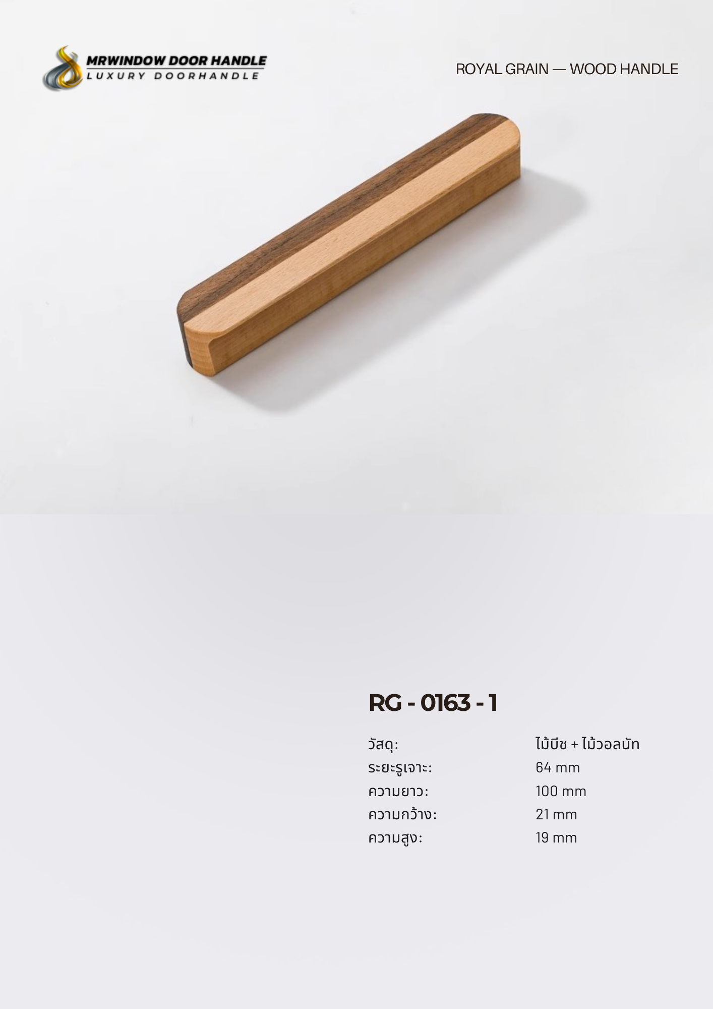 รุ่นRG-0163 ออกแบบสำหรับติดตั้งแบบ 2 รูยึด (มีระยะรูเจาะ) แข็งแรง รองรับงานตู้ครัว ตู้เสื้อผ้า ลิ้นชัก โต๊ะเครื่องแป้ง งานบิลท์อิน และโครงการที่ต้องการดีไซน์ไม้ธรรมชาติที่แตกต่าง
