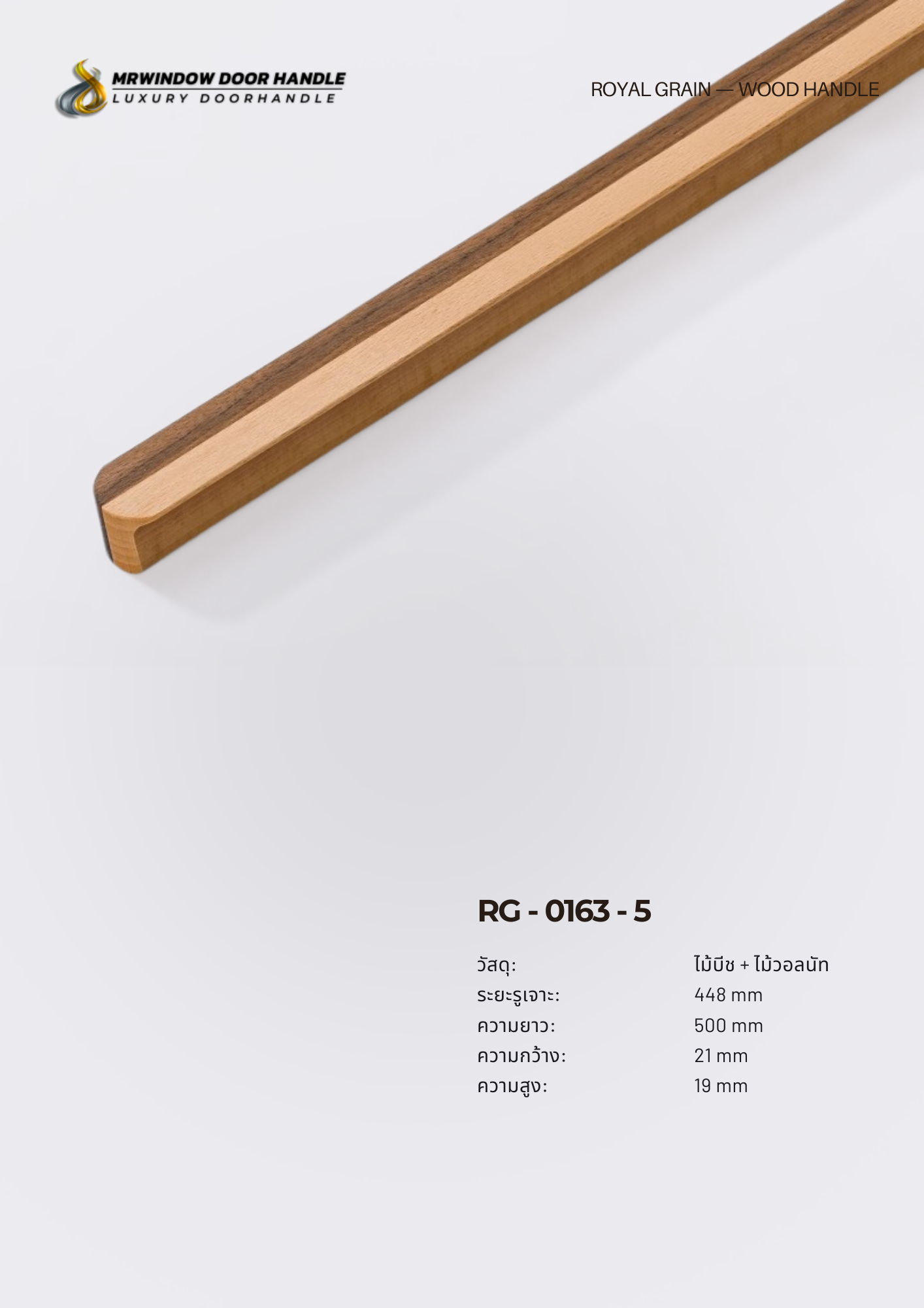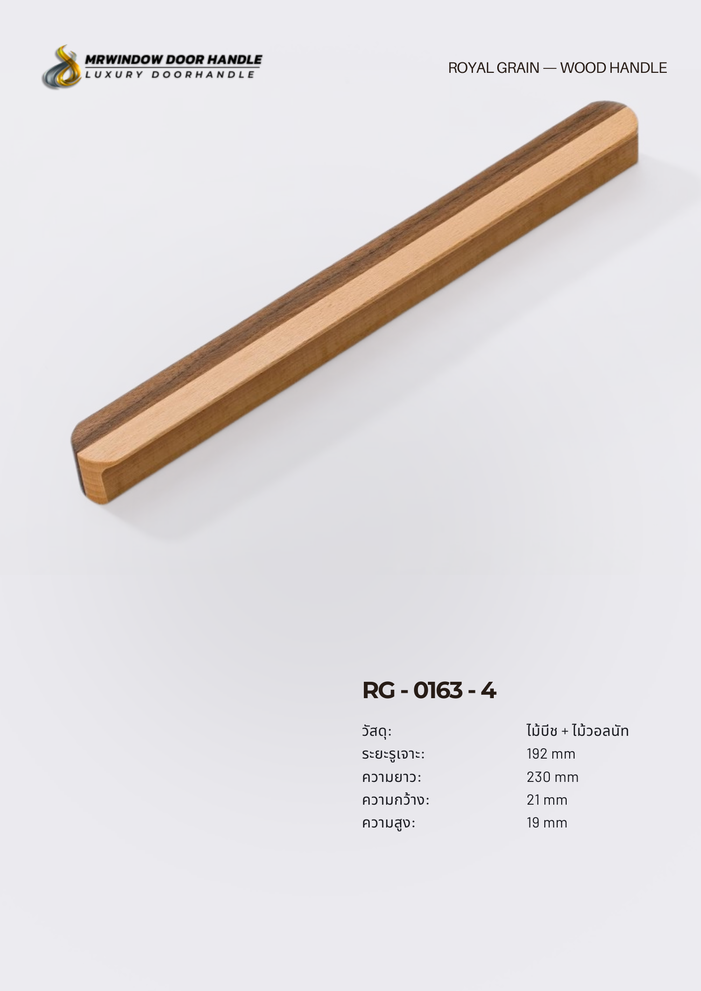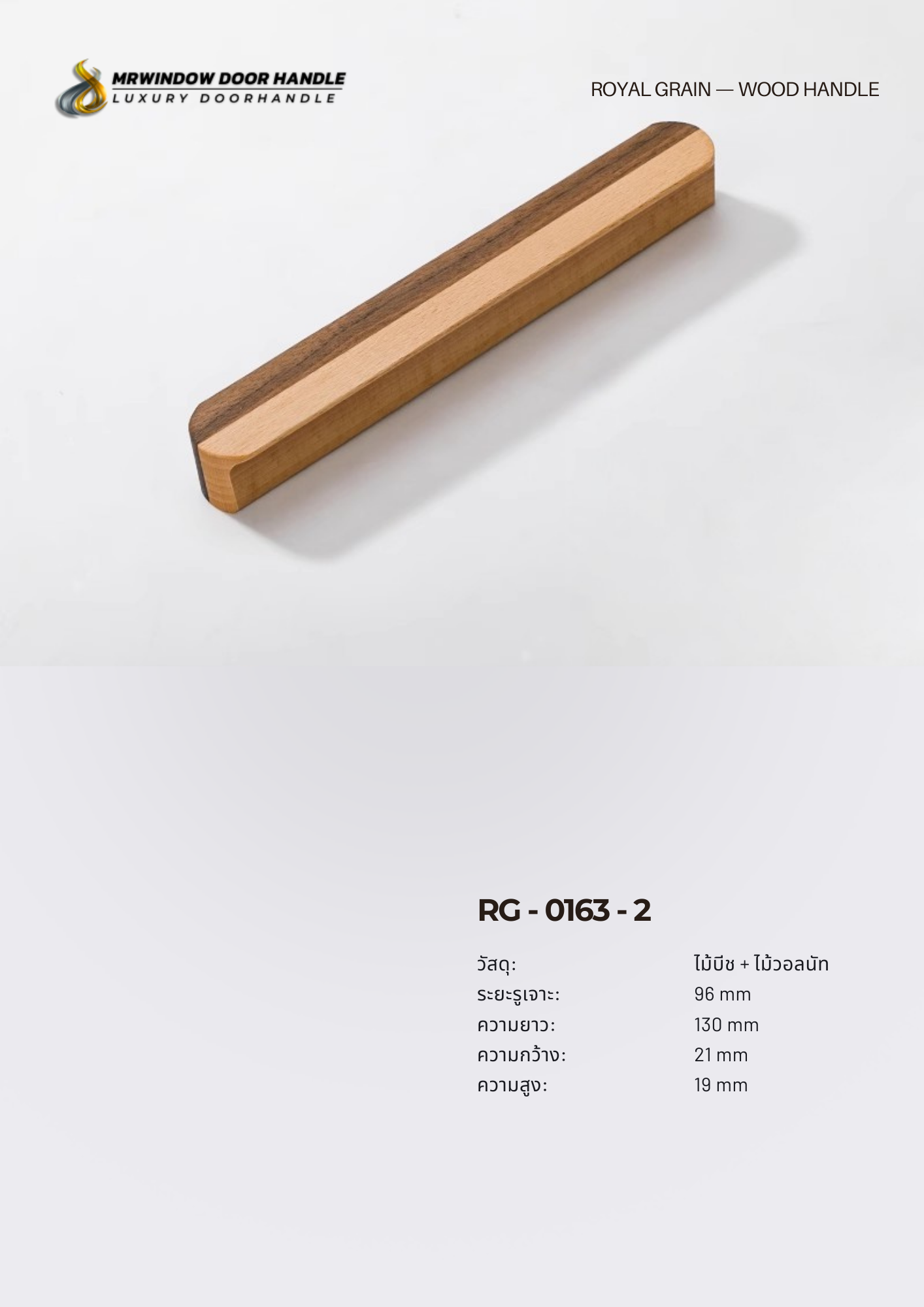 มือจับไม้ 2 โทน RG-0163 ที่เติมมิติให้เฟอร์นิเจอร์ด้วยดีไซน์ไม้ 2 โทนสุดพรีเมียม ผสานความอบอุ่นของ ไม้บีช (Beech) และความเข้มลึกของ ไม้วอลนัท (Walnut) อย่างลงตัว เส้นสายเรียบสะอาด สไตล์ Modern / Japandi / Scandinavian ให้ลุคเรียบหรูแบบงานสั่งทำ
