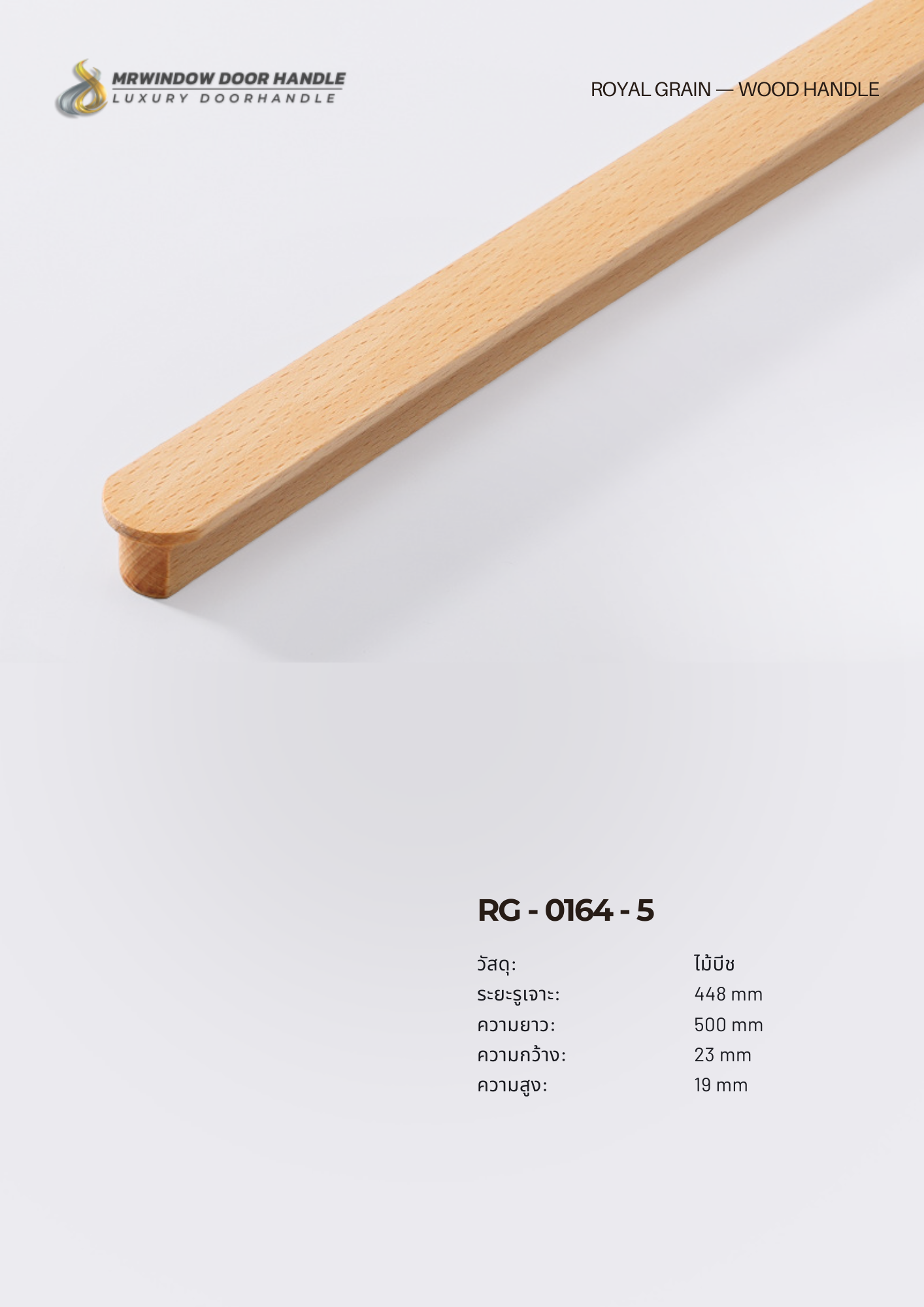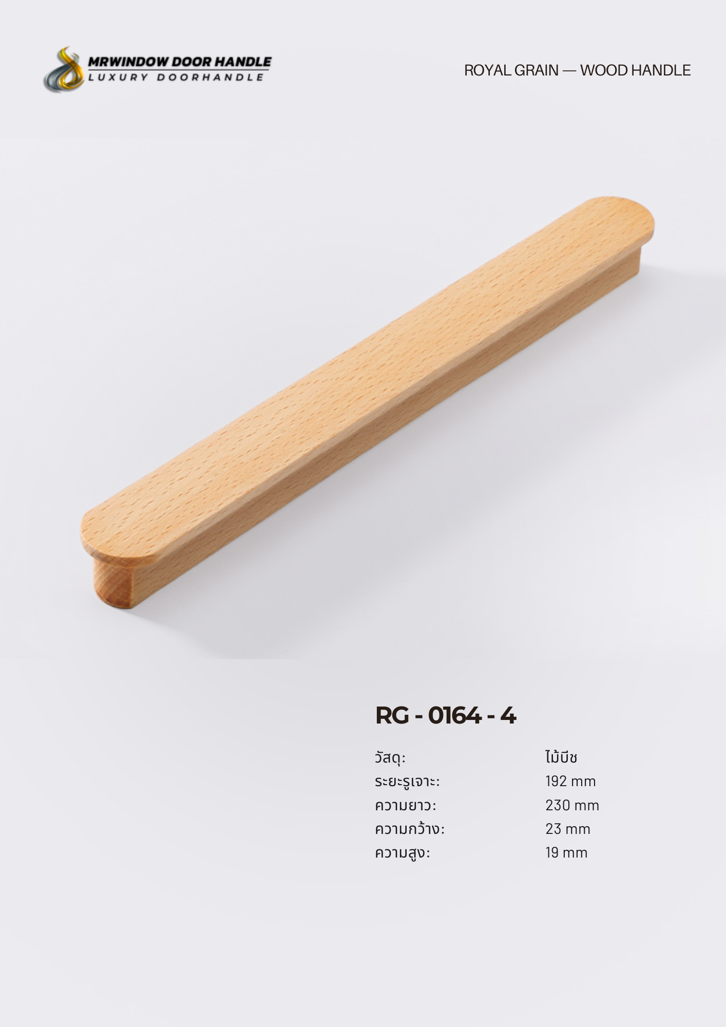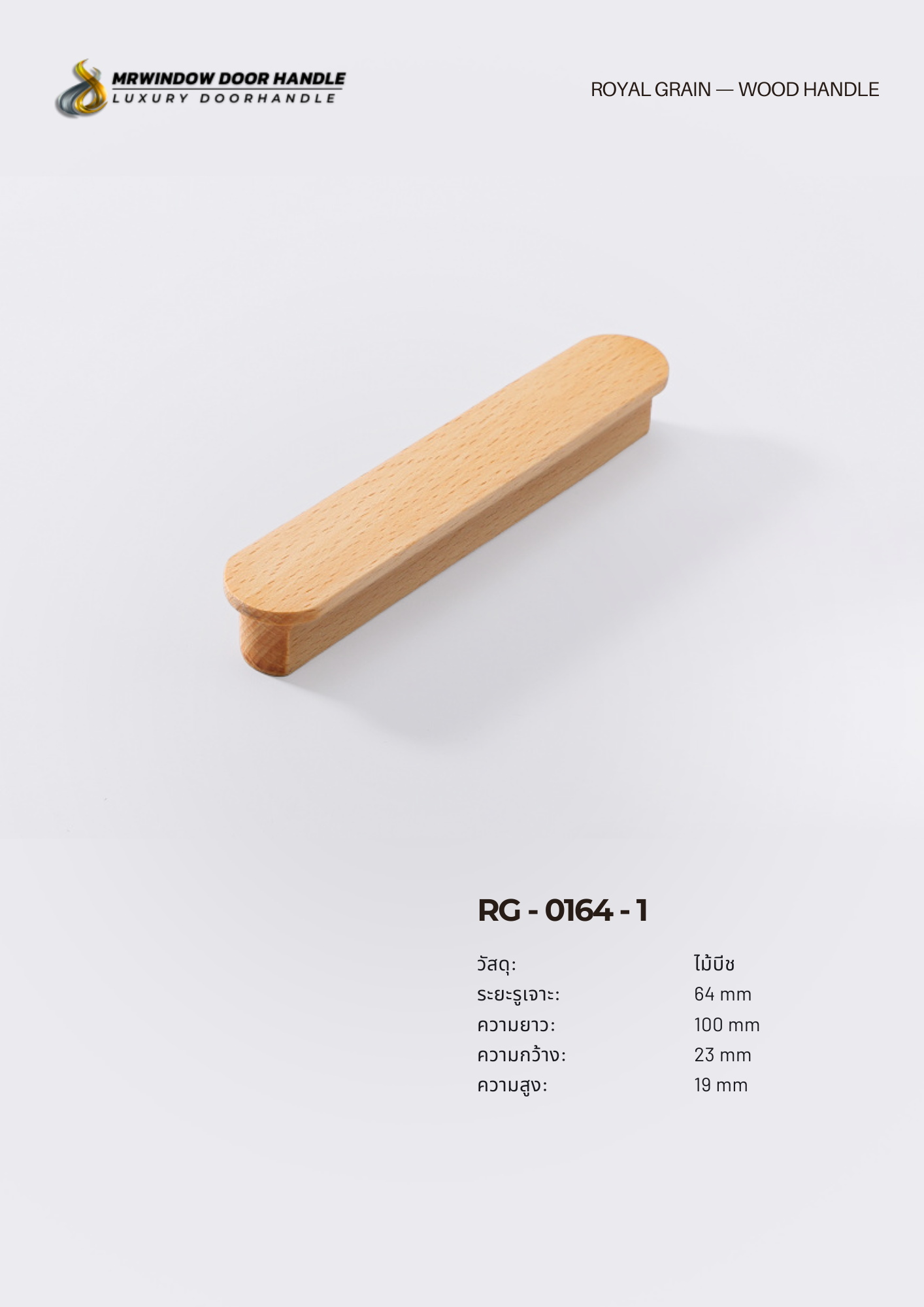 RG-0164 มือจับไม้จริงที่ผลิตจาก ไม้บีชแท้ (Solid Beech Wood) ให้ลายไม้สวยงามตามธรรมชาติ ผิวสัมผัสเรียบเนียน โทนสีอบอุ่น เหมาะกับงานตกแต่งสไตล์ Modern, Scandinavian, Japandi และ Minimal Luxury