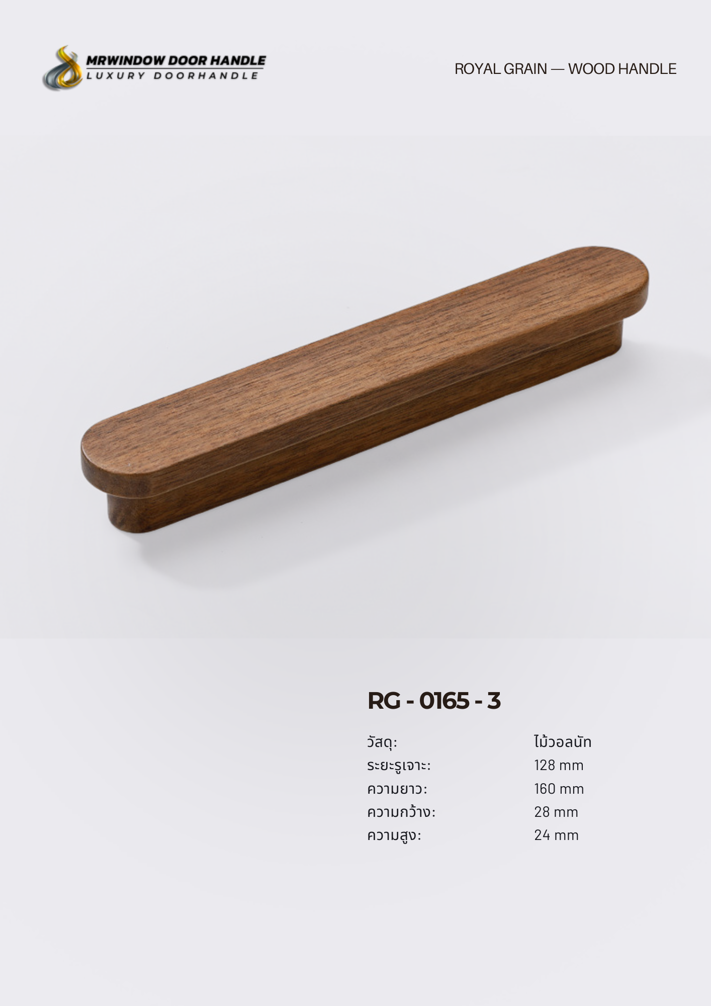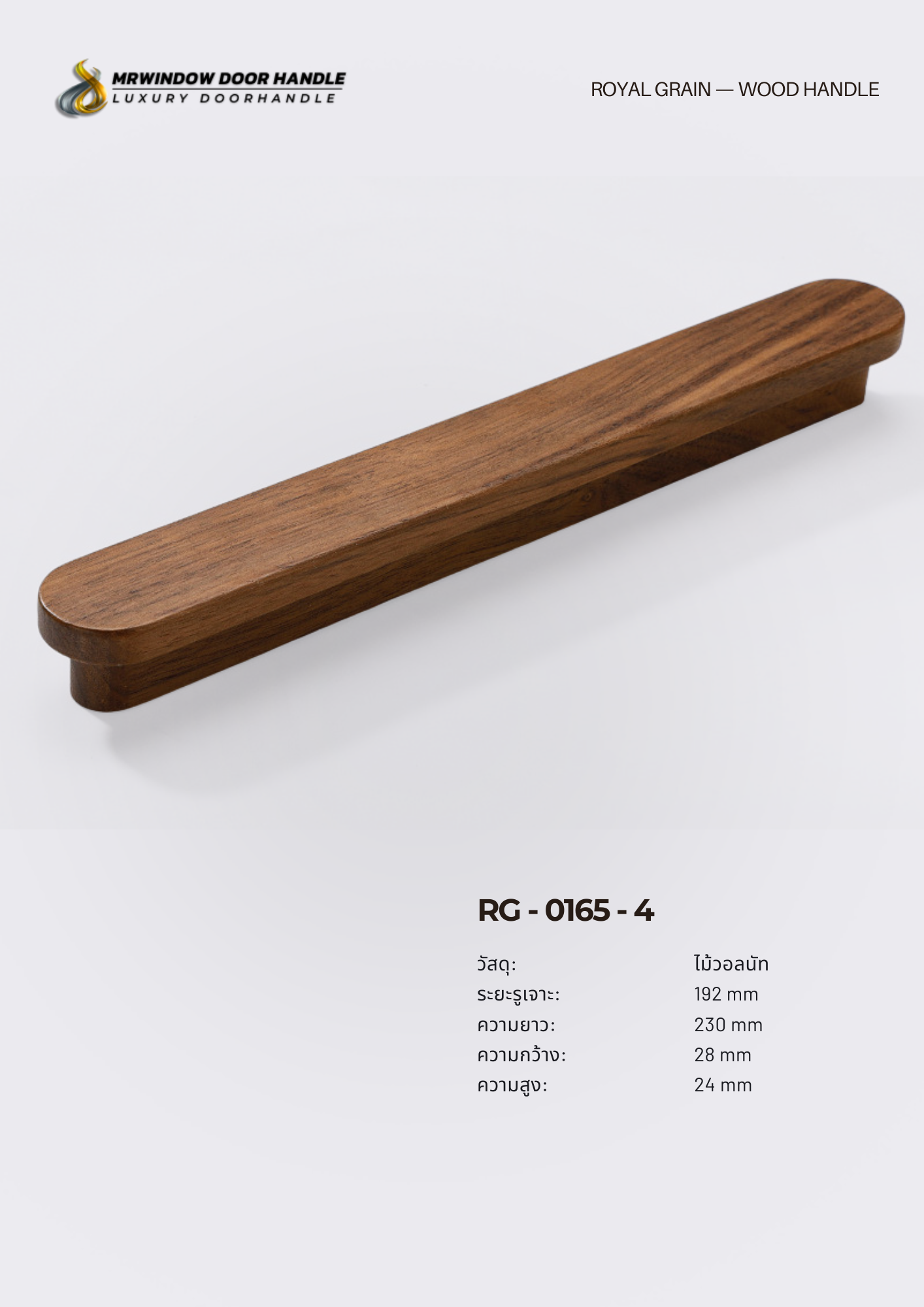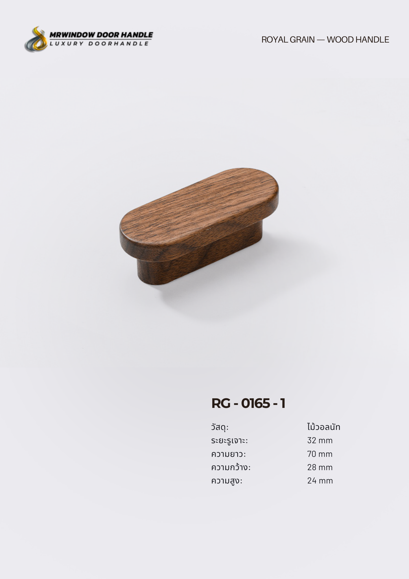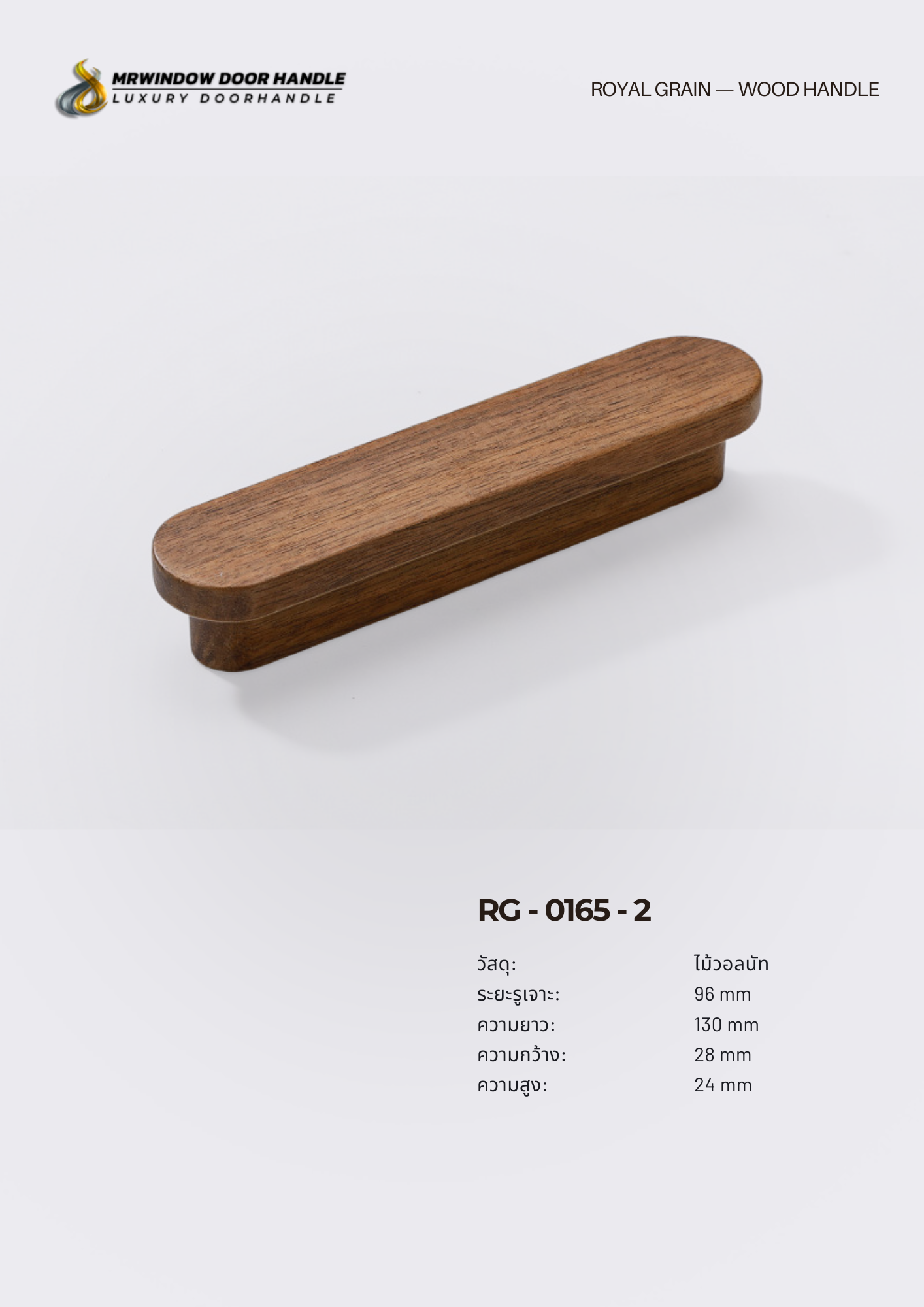 RG-0165 ผลิตจาก ไม้โอ๊ค (Solid Oak Wood) ให้ลายไม้ชัดเจน โทนสีน้ำตาลอบอุ่น ให้ความรู้สึกพรีเมียมและเป็นธรรมชาติในเวลาเดียวกัน เหมาะกับงานตกแต่งสไตล์ Modern, Contemporary, Scandinavian และ Luxury Natural