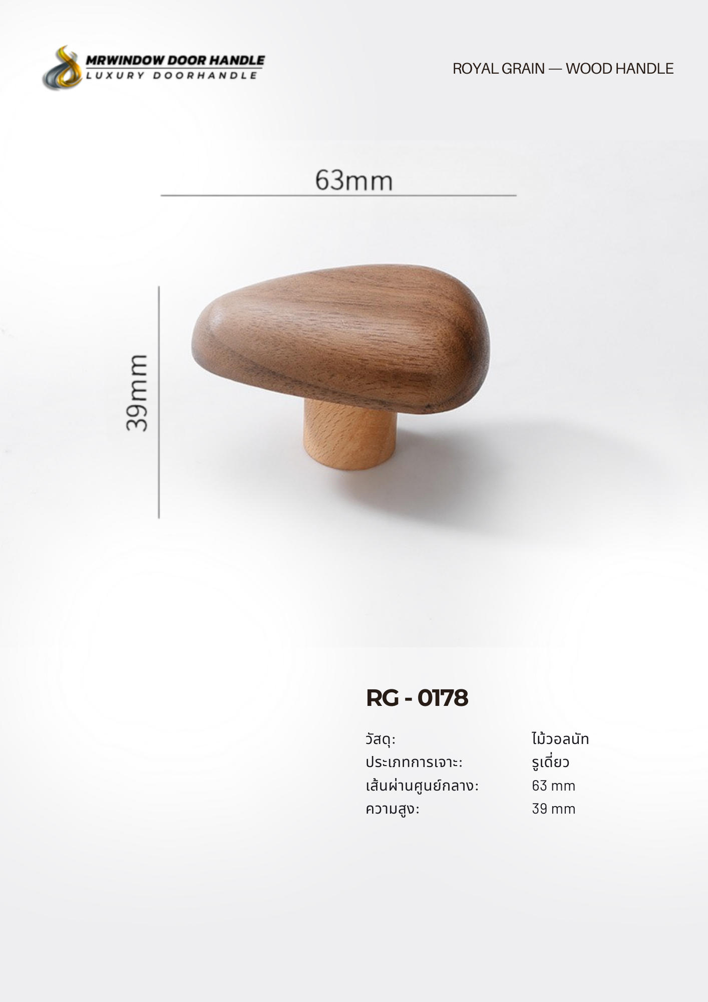 RG – 0178 คือปุ่มจับไม้แท้ดีไซน์โค้งมนทรง Organic ที่ให้ความรู้สึกนุ่มนวล อบอุ่น และเป็นธรรมชาติ โดดเด่นด้วยรูปทรงคล้ายก้อนหินธรรมชาติที่ผ่านการขัดแต่งอย่างประณีต เหมาะสำหรับงานตกแต่งภายในที่ต้องการความแตกต่างอย่างมีรสนิยม