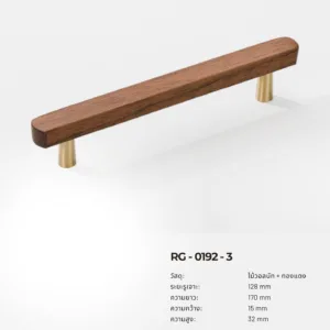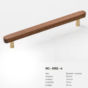RG-0192 คือชุดมือจับไม้แท้ผสมฐานทองแดง (Brass Finish) ที่ออกแบบมาในสไตล์ Modern Luxury ผสมผสานความอบอุ่นของไม้วอลนัทเข้ากับความหรูของโลหะสีทองแดงได้อย่างลงตัว