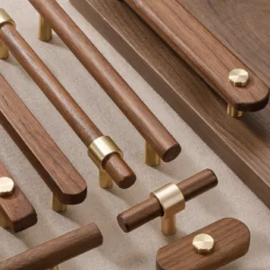ด้ามจับผลิตจากไม้วอลนัทแท้ ให้ลายไม้ธรรมชาติ โทนสีน้ำตาลเข้ม เพิ่มความอบอุ่นให้เฟอร์นิเจอร์ ส่วนขารองรับเป็นโลหะสีทองด้าน เพิ่มความหรูและตัดกับลายไม้ได้อย่างมีมิติ