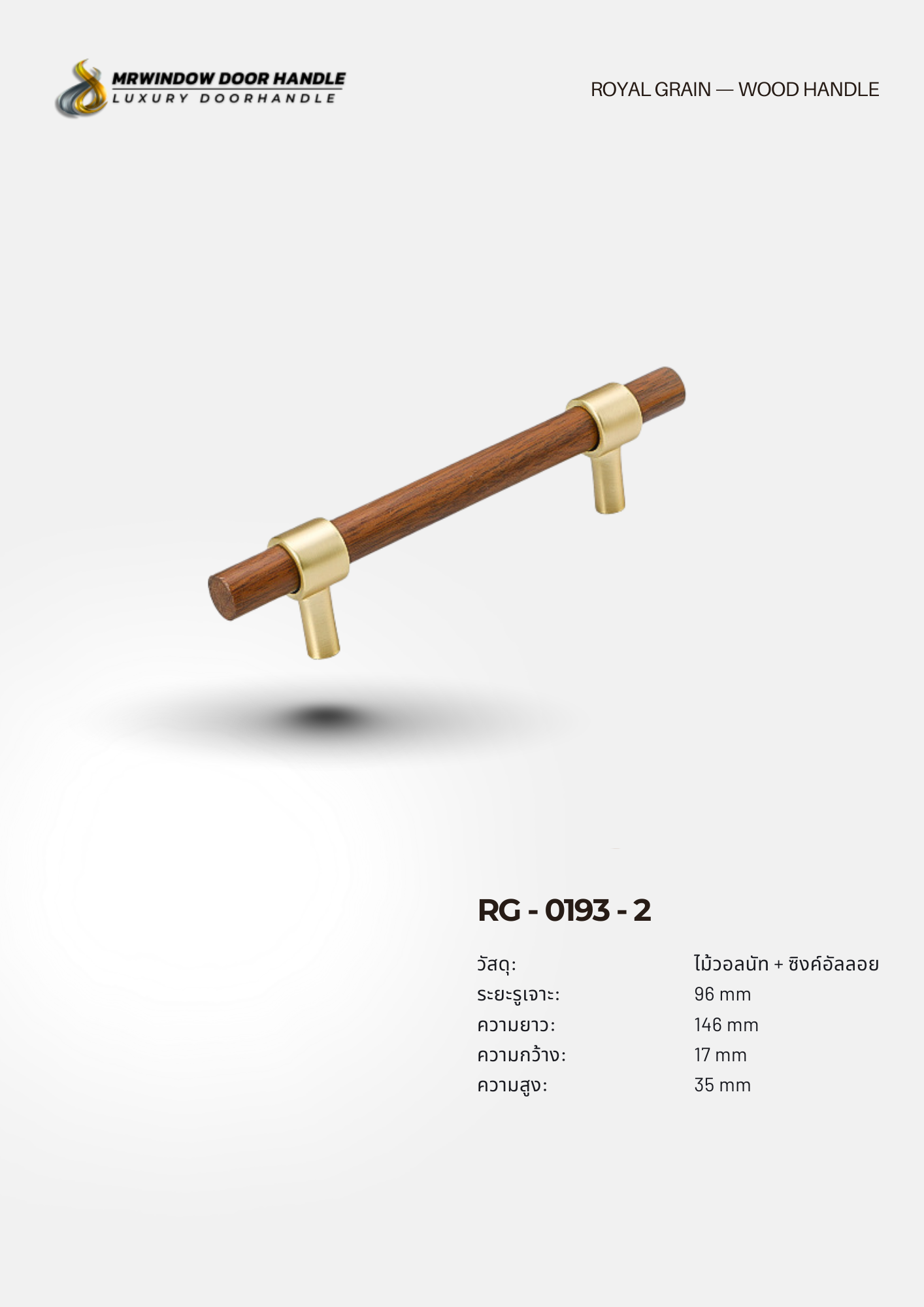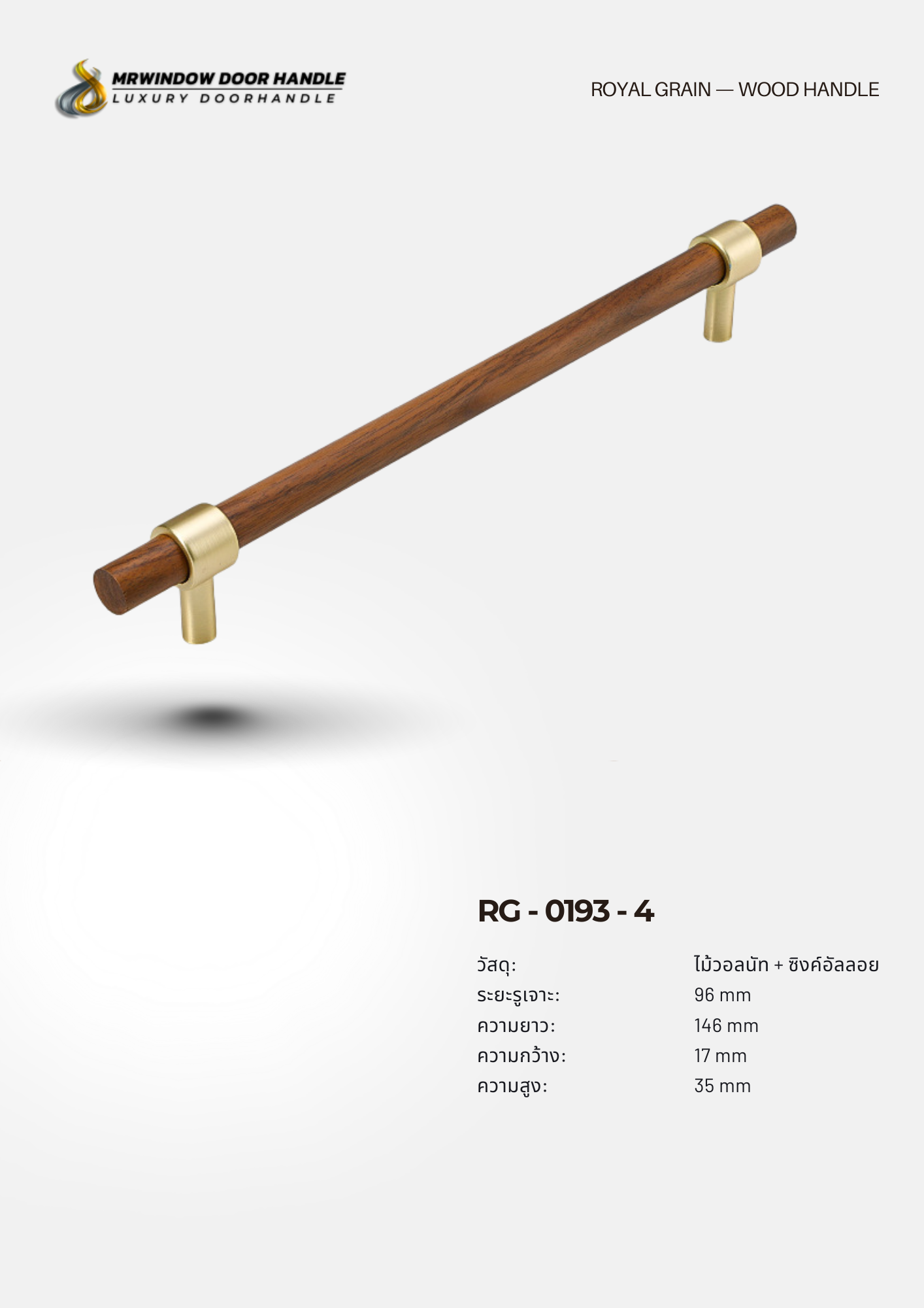 RG-0193 คือการผสมผสานความอบอุ่นของ ไม้วอลนัทแท้ กับความหรูของ ฐานทอง (Brushed Gold Finish) ได้อย่างลงตัว ดีไซน์ทรงแท่งกลม (Round Bar Design) เรียบหรู ดูโมเดิร์น เหมาะกับบ้านและโครงการระดับพรีเมียม