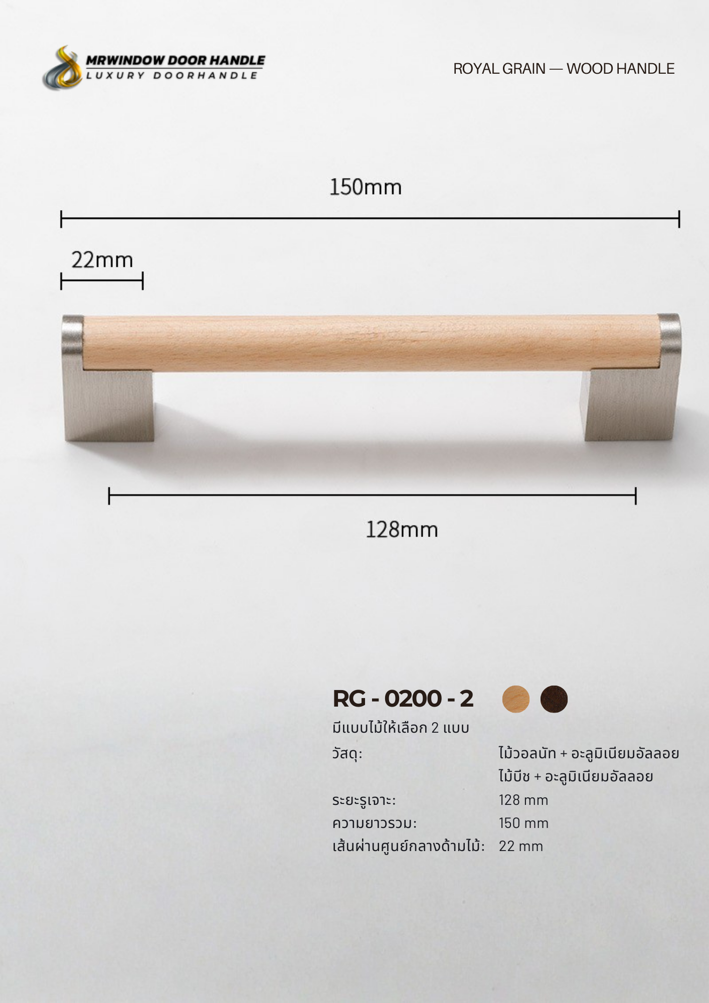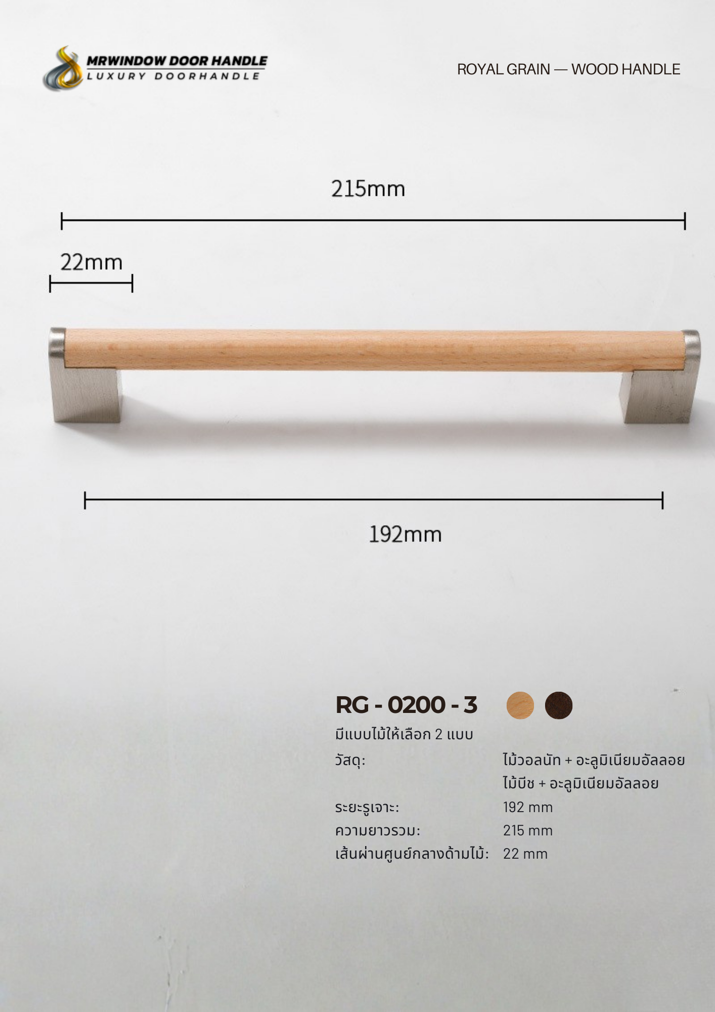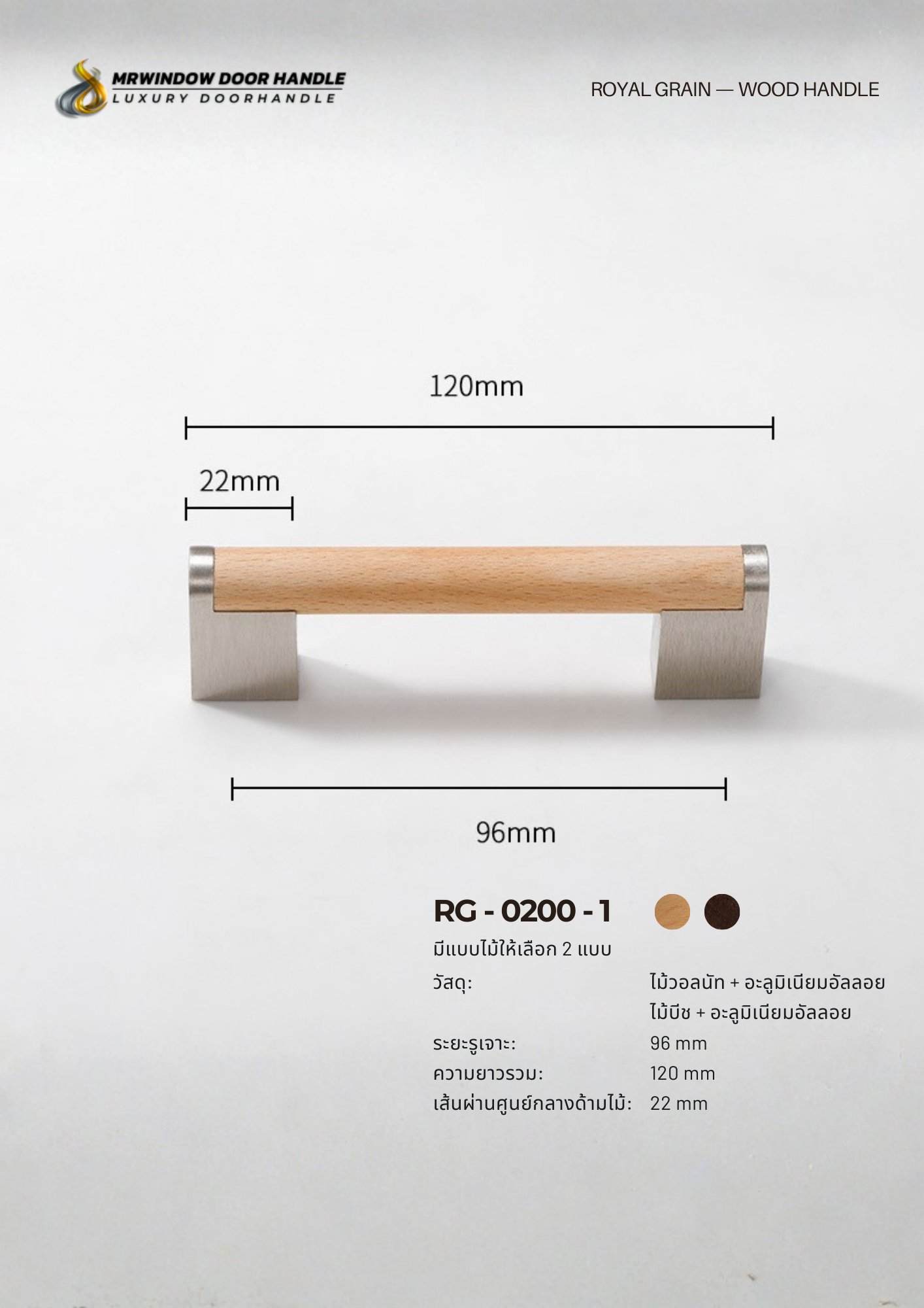 RG-0200 คือคอลเลกชันมือจับไม้ดีไซน์ทรงกระบอก (Round Wood Bar Handle) ที่ออกแบบให้ผสานความอบอุ่นของไม้ธรรมชาติ เข้ากับความเรียบเท่ของฐานอะลูมิเนียมอัลลอยอย่างลงตัว