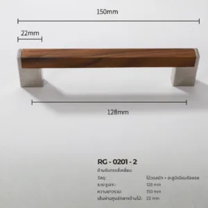 RG-0201 คือมือจับเฟอร์นิเจอร์ไม้แท้ดีไซน์ “ทรงสี่เหลี่ยม” ที่ให้ลุคเรียบหรูแบบ Modern Luxury เหมาะมากกับงานบิวท์อิน ตู้ครัว ตู้เสื้อผ้า ลิ้นชัก โต๊ะเครื่องแป้ง และเฟอร์นิเจอร์ที่ต้องการความพรีเมียมแบบดูแพงตั้งแต่แรกเห็น จุดเด่นของรุ่นนี้คือ ไม้อลนัท (Walnut Wood) ที่มีลายไม้ธรรมชาติสวยงาม โทนอบอุ่น และให้สัมผัสนุ่มมือ เมื่อนำมาผสานกับ อะลูมิเนียมขัดลาย (Brushed Aluminum) จะได้ความคม เท่ และโมเดิร์นแบบลงตัว ทำให้เข้ากับงานตกแต่งหลากหลายสไตล์ ไม่ว่าจะเป็น Modern, Minimal, Japandi, Contemporary หรือ Luxury Condo