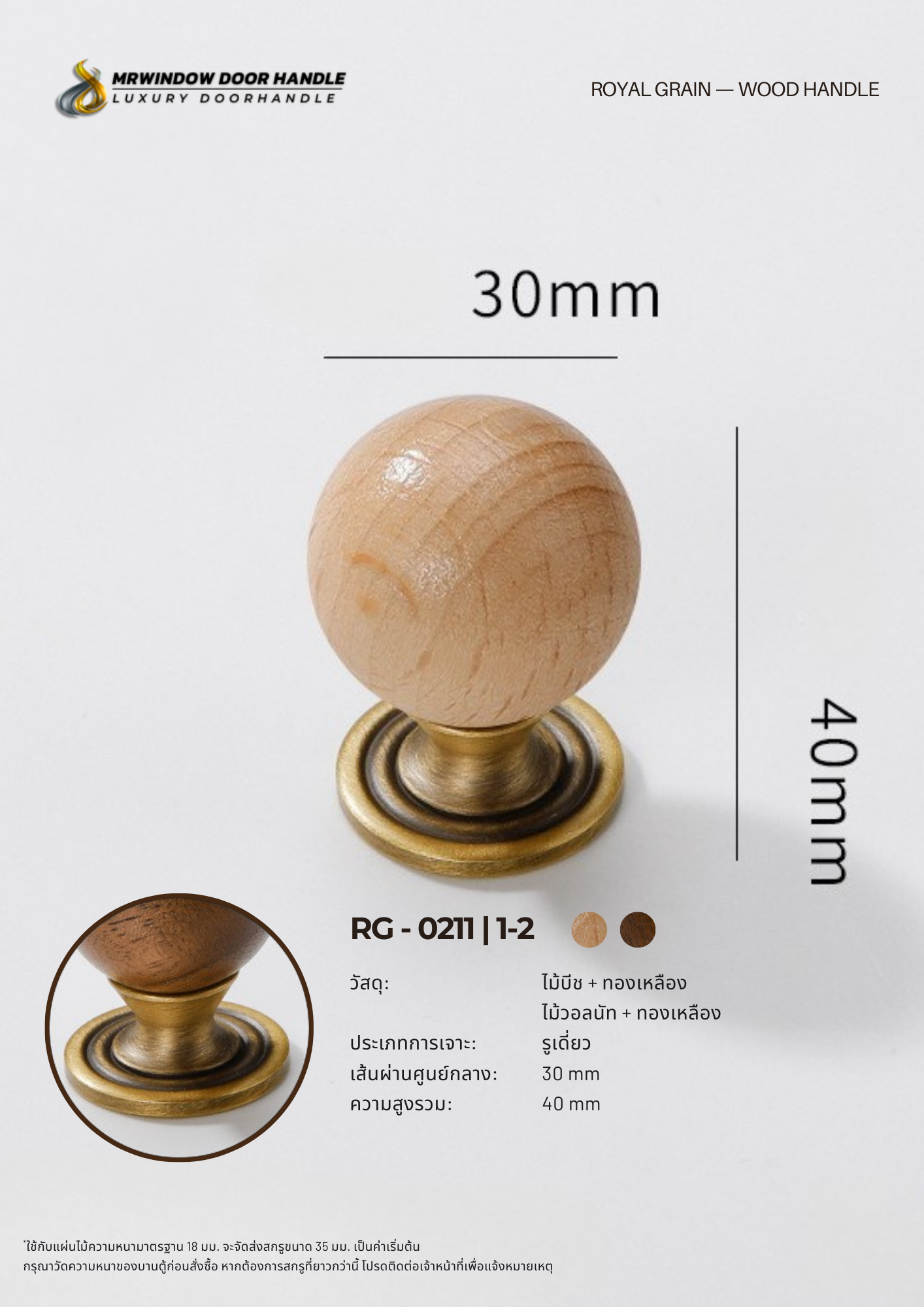 ปุ่มจับไม้วอลนัท/ไม้บีช RG-0210และRG-0211 ออกแบบในสไตล์ Classic Luxury ที่เน้นความสมดุลระหว่างไม้ธรรมชาติและโลหะทองเหลืองพรีเมียม