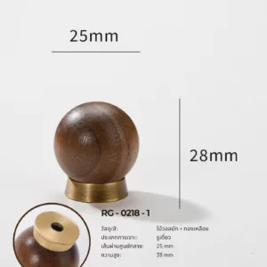 RG-0218 คือคอลเลกชันปุ่มจับไม้แท้ที่ออกแบบมาเพื่อสะท้อนความเรียบง่ายที่หรูหรา (Elegant Simplicity) อย่างแท้จริง ดีไซน์ทรงกลมคลาสสิกผสานเข้ากับฐานทองเหลืองแท้ที่มีความเรียบหรู ให้ภาพลักษณ์ที่ดูอบอุ่นจากลายไม้ธรรมชาติ และเสริมความโดดเด่นด้วยโทนทองที่ดูพรีเมียม