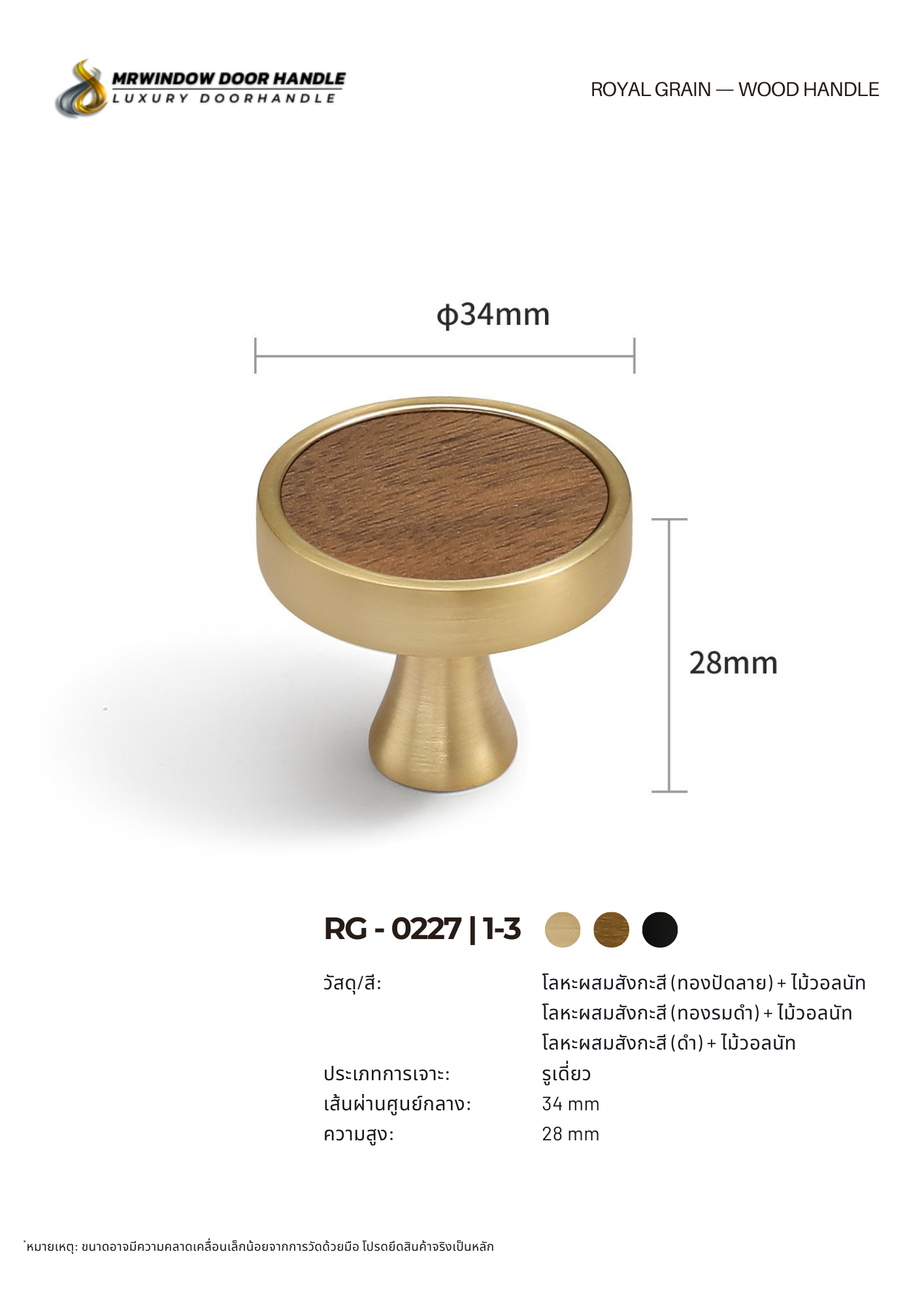 มือจับไม้ดีไซน์ฐานโลหะ รุ่น RG-0226 และ RG-0227 คือปุ่มจับไม้ดีไซน์เรียบหรูที่ออกแบบมาเพื่อยกระดับรายละเอียดของเฟอร์นิเจอร์ให้ดูพรีเมียมยิ่งขึ้น