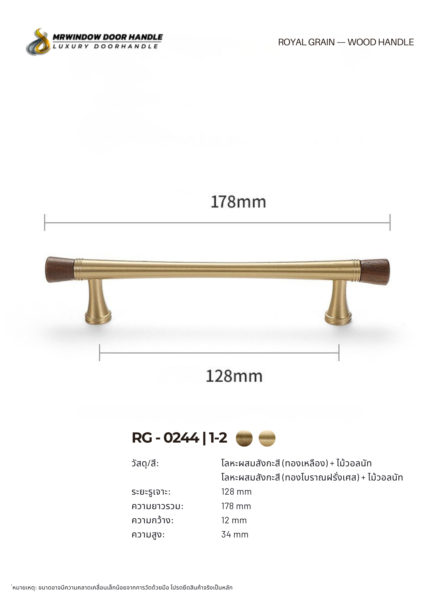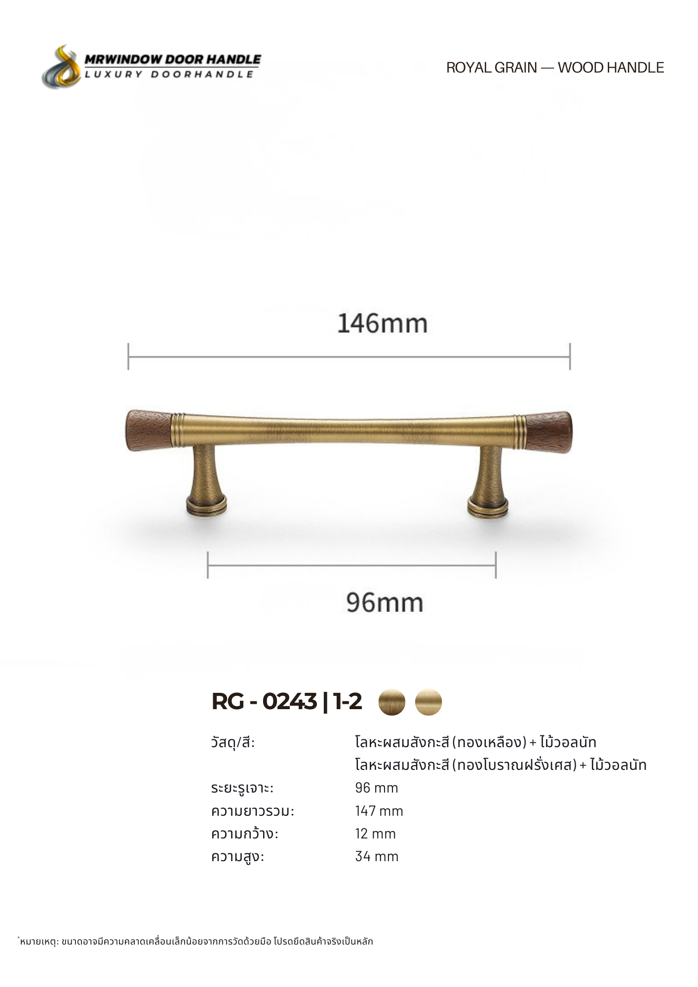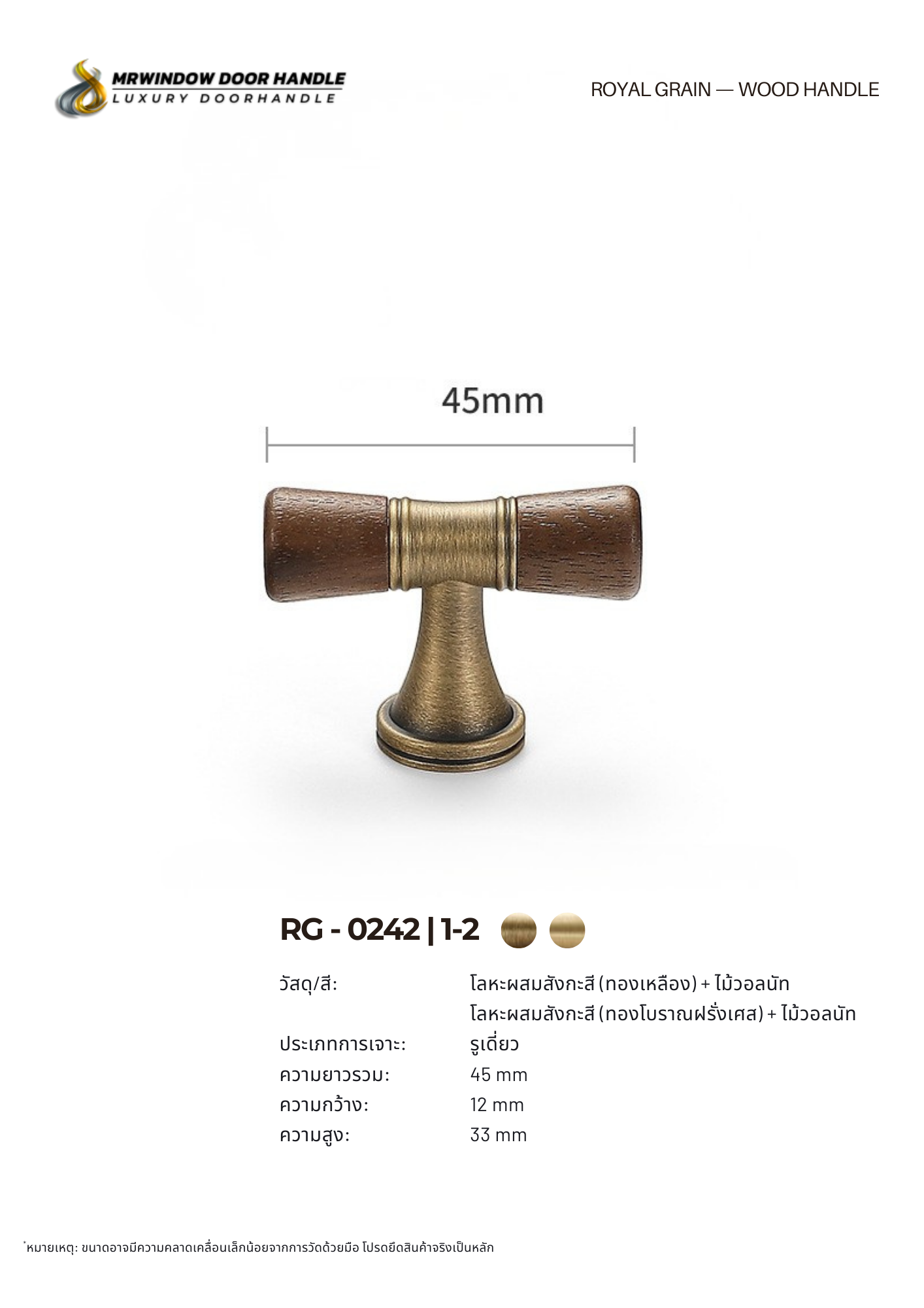 ซีรีส์มือจับและปุ่มจับไม้ RG–0242 ถึง RG–0244 คือซีรีส์ที่ออกแบบมาเพื่อสะท้อนความหรูแบบคลาสสิกผสมความอบอุ่นของไม้ธรรมชาติ ดีไซน์หลักของทั้งสามรุ่นคือ “เส้นโค้งเรียวกลางชิ้นงาน” และ “หัวไม้สองด้าน” ที่ช่วยสร้างจุดเด่นให้หน้าบานดูมีมิติ แตกต่างจากมือจับทั่วไปที่เป็นทรงตรงธรรมดาวัสดุผลิตจากโลหะผสมสังกะสีคุณภาพสูง แข็งแรง ทนต่อการใช้งานระยะยาว พร้อมผิวปัดลายโทนอุ่นที่เข้ากับไม้แท้ได้อย่างลงตัว หัวไม้ปลายทั้งสองด้านช่วยเพิ่มความรู้สึก Luxury Natural Style เหมาะกับงาน Built-in ระดับพรีเมียม บ้านหรู และคอนโด High-End