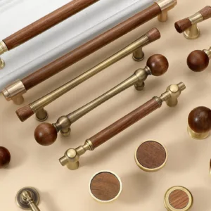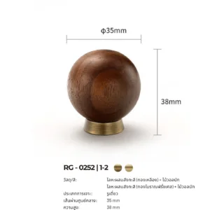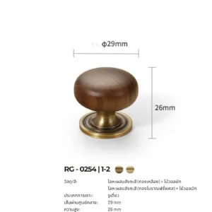 ชุดปุ่มจับไม้แท้ทรงกลม RG-0251 ถึง RG-0254 ถ่ายทอดความงามของไม้แท้ผสานโลหะโทนทองเหลืองวินเทจอย่างลงตัว