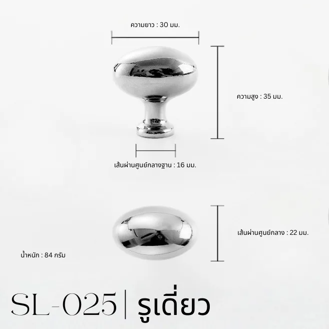 ปุ่มจับเฟอร์นิเจอร์ รุ่นSL-025 ดีไซน์ทรงรีเรียบหรู ผิวสีเงินเงาขัดละเอียด ให้ภาพลักษณ์ทันสมัยและสะอาดตา ตัวปุ่มจับออกแบบให้โค้งมน จับถนัดมือ แข็งแรง และใช้งานได้อย่างมั่นคง เหมาะสำหรับตู้ ลิ้นชัก และเฟอร์นิเจอร์บิลต์อินทุกประเภท ช่วยยกระดับงานตกแต่งให้ดูพรีเมียมยิ่งขึ้น พร้อมติดตั้งง่ายและรองรับการใช้งานในชีวิตประจำวันได้อย่างลงตัว