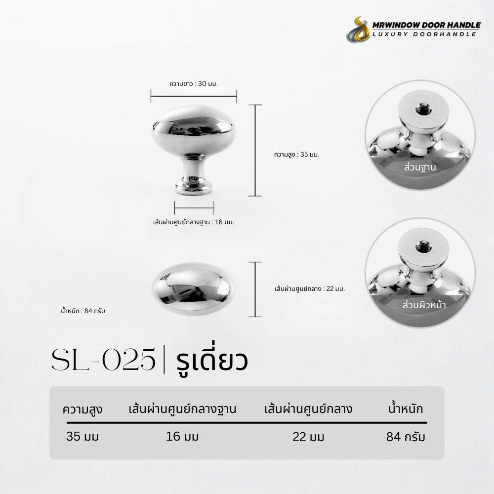 SL-025 คือปุ่มจับเฟอร์นิเจอร์ที่ออกแบบมาเพื่อตอบโจทย์งานตกแต่งที่ต้องการความหรูหราแบบร่วมสมัย ตัวปุ่มทรงรีมีเส้นสายโค้งมนอย่างสมดุล ช่วยให้จับถนัดมือและเพิ่มมิติให้กับพื้นผิวเฟอร์นิเจอร์ได้อย่างลงตัว