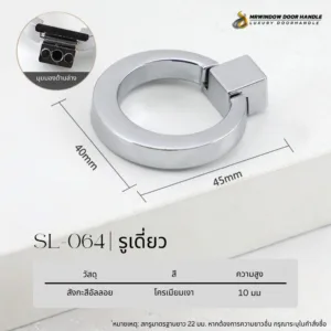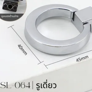 SL-064 คือมือจับเฟอร์นิเจอร์ทรงวงแหวนที่ออกแบบมาเพื่อตอบโจทย์งานตกแต่งสไตล์โมเดิร์นและมินิมอลโดยเฉพาะ รูปทรงวงกลมให้ความรู้สึกสมดุล เรียบหรู และมีเอกลักษณ์ ช่วยเพิ่มมิติให้หน้าบานตู้โดยไม่รบกวนดีไซน์หลักของเฟอร์นิเจอร์