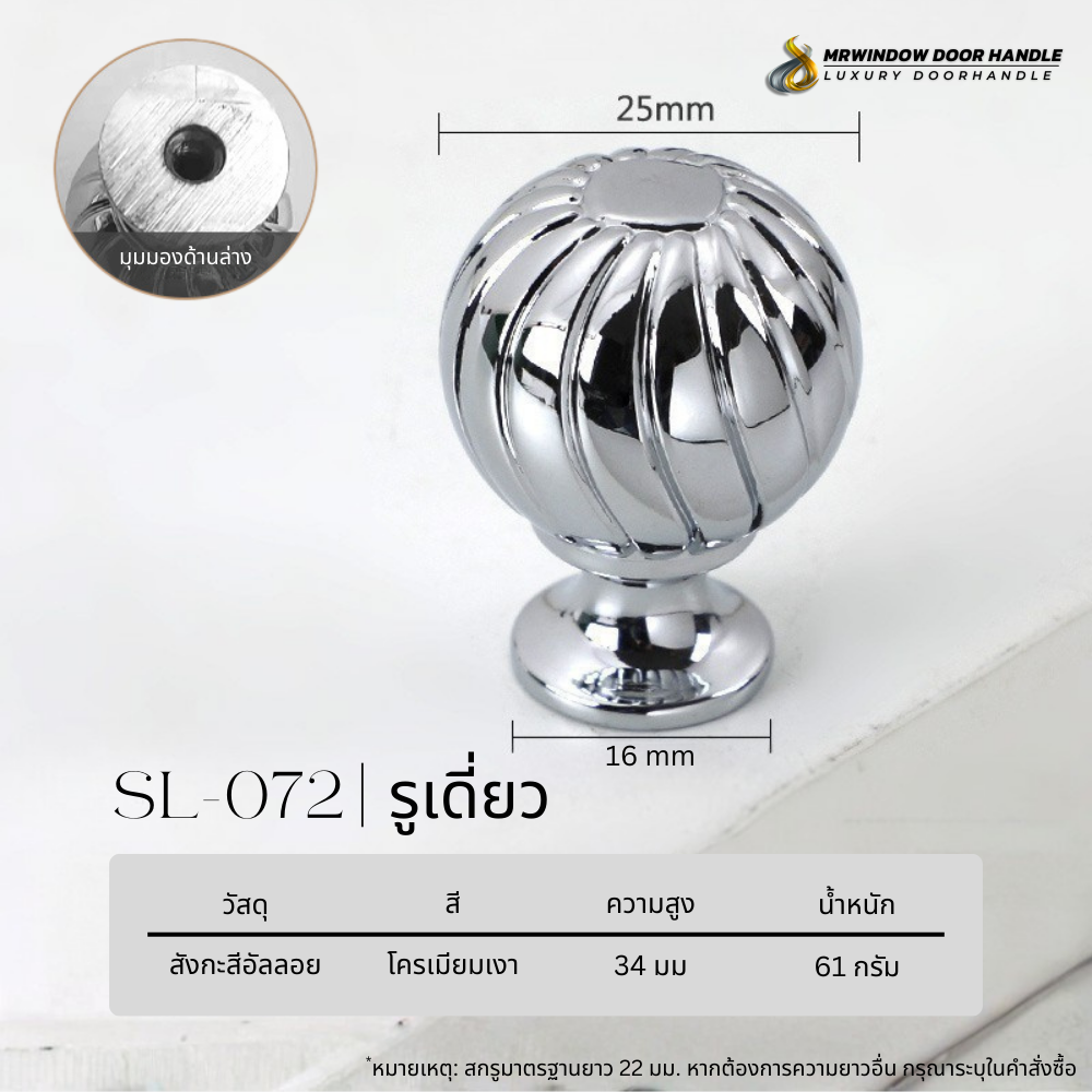 SL-072 คือปุ่มจับเฟอร์นิเจอร์แบบเดี่ยวจากคอลเลกชัน Majestic Silver Line ที่โดดเด่นด้วยรูปทรงกลมพร้อมลายร่องแนวตั้งรอบตัว ช่วยเพิ่มมิติและรายละเอียดให้หน้าบานเฟอร์นิเจอร์ ดูหรูหรา มีเอกลักษณ์ และแตกต่างจากปุ่มจับทรงเรียบทั่วไป